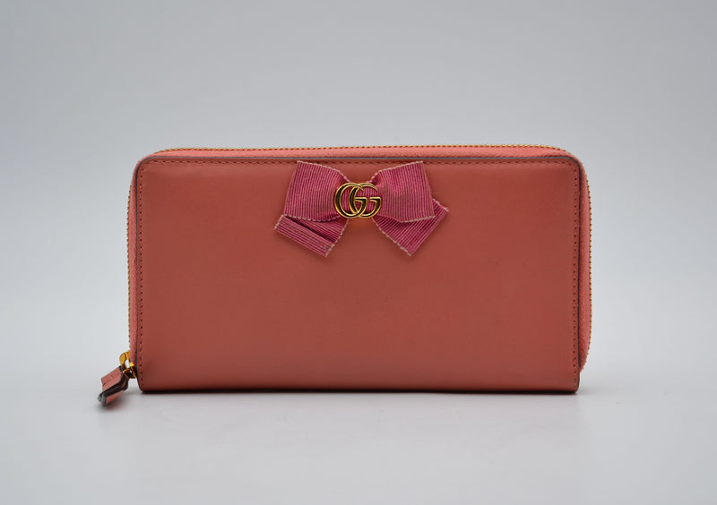 Portefeuille Gucci cuir grainé doré Bamboo zippy