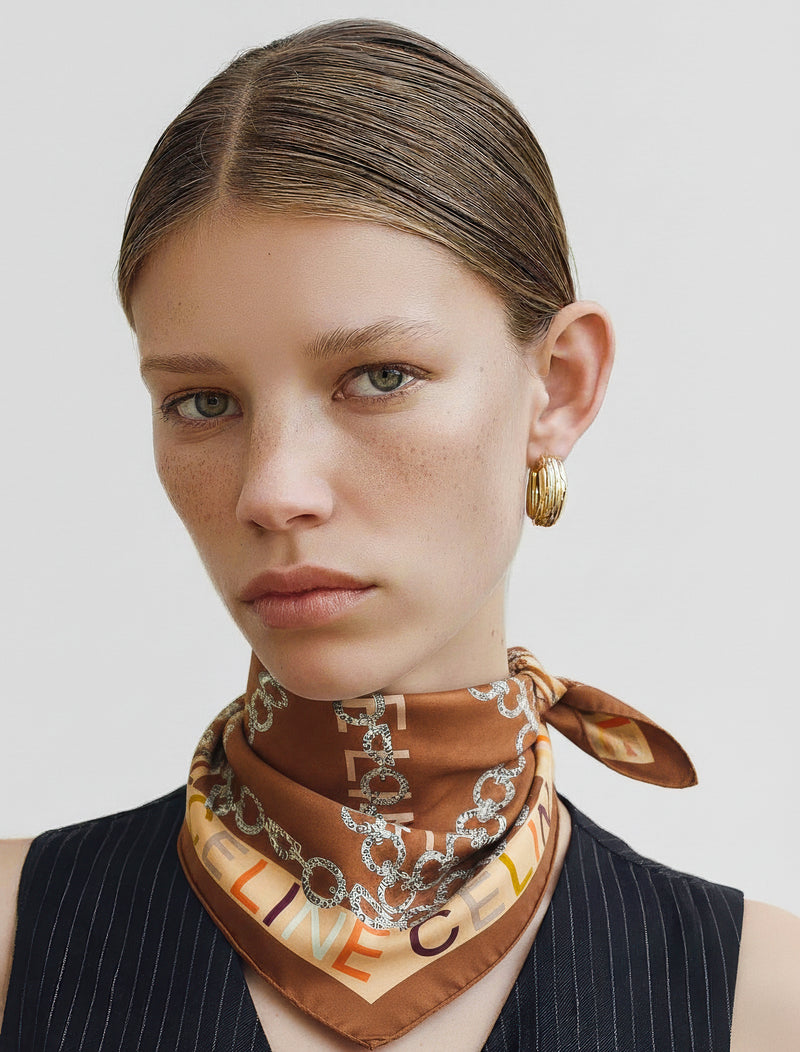 Celine Cotton Scarf – White & Brown Chain Print