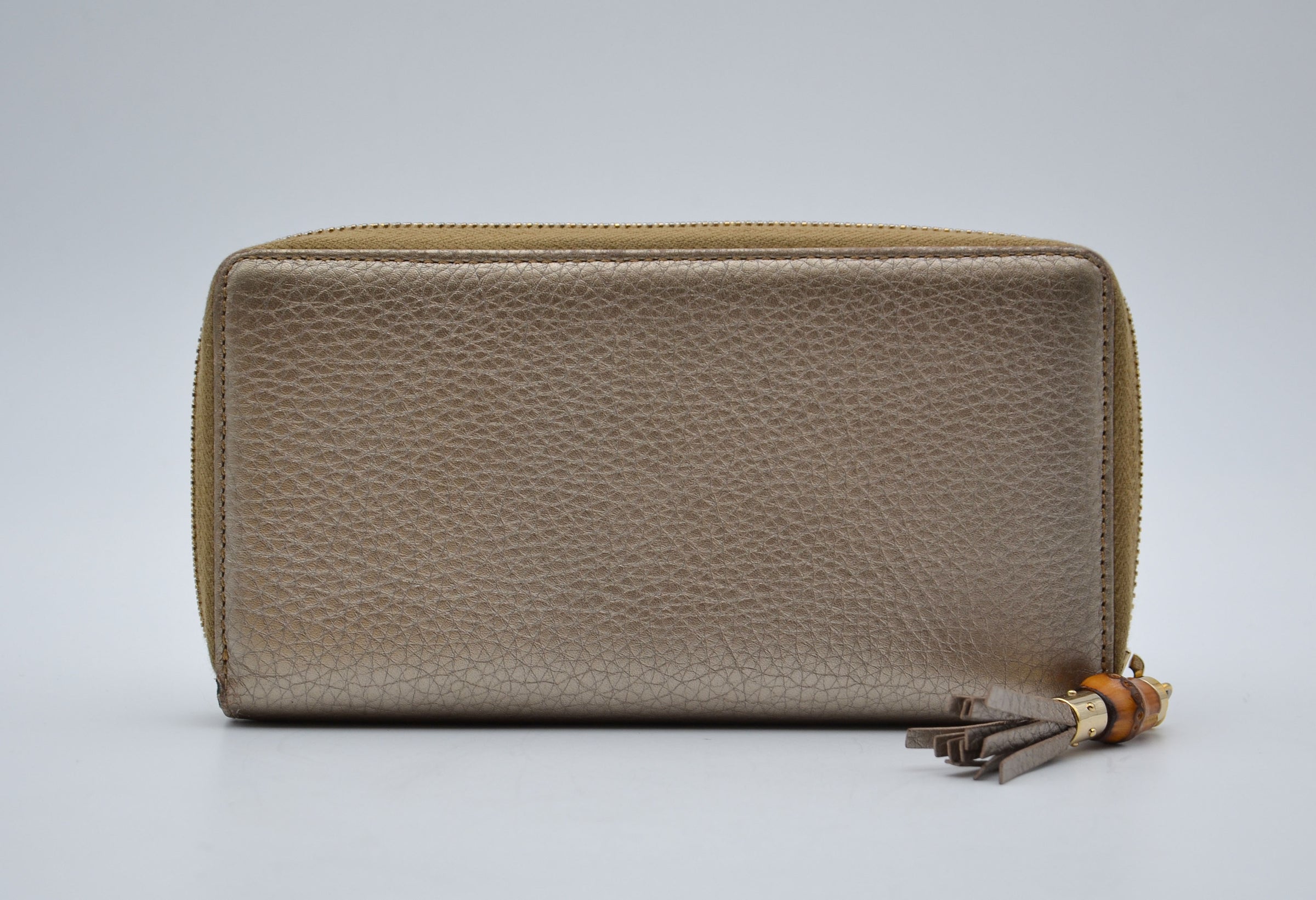 Portefeuille Gucci cuir grainé doré Bamboo zippy – Rarr.vintage