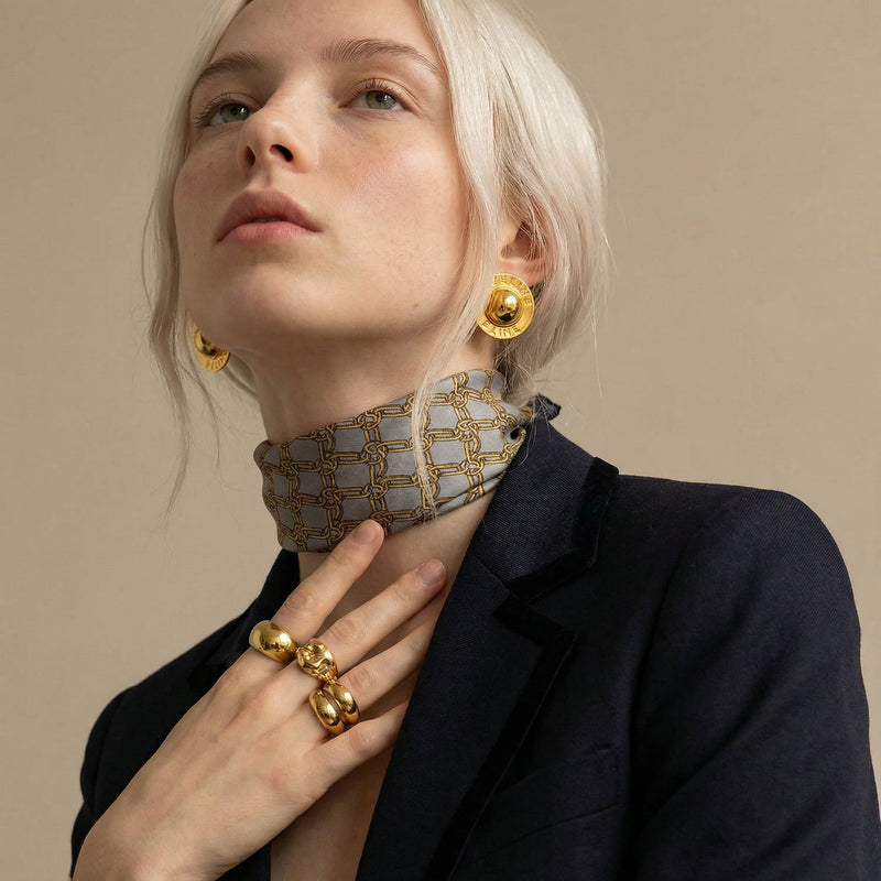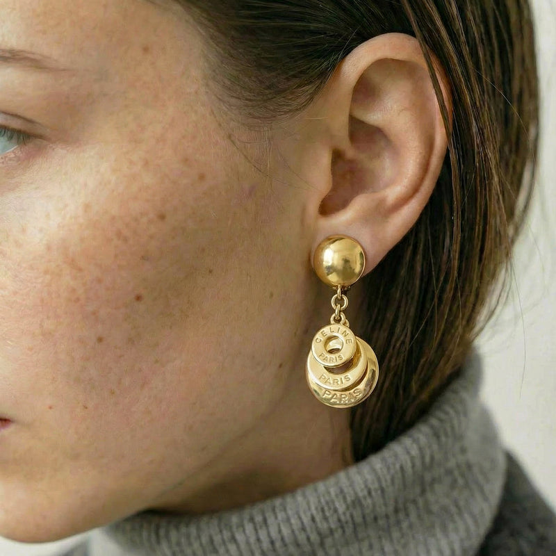 Boucles d’Oreilles Céline Vintage Maximalistes Multi-Disques Plaqué Or – Années 90
