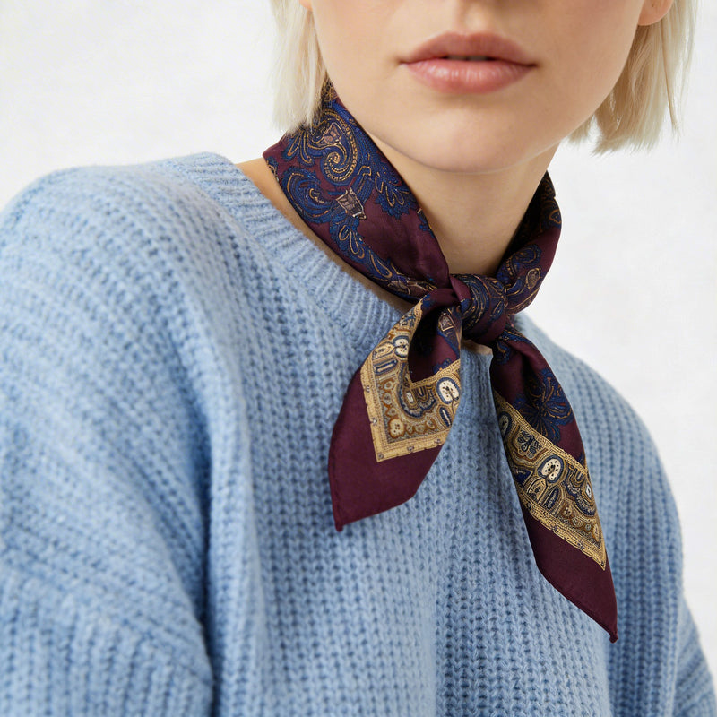Foulard Vintage Céline À Motif Cachemire Bleu Et Or- generation