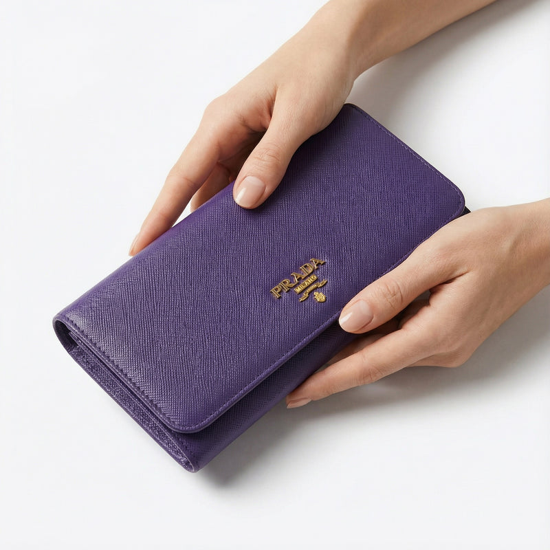 Portefeuille long Prada en cuir Saffiano violet