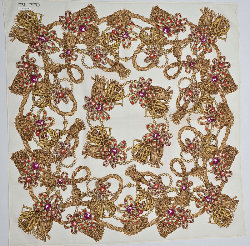 Foulard Vintage Christian Dior À Motif Bijoux Et Cordages Dorés