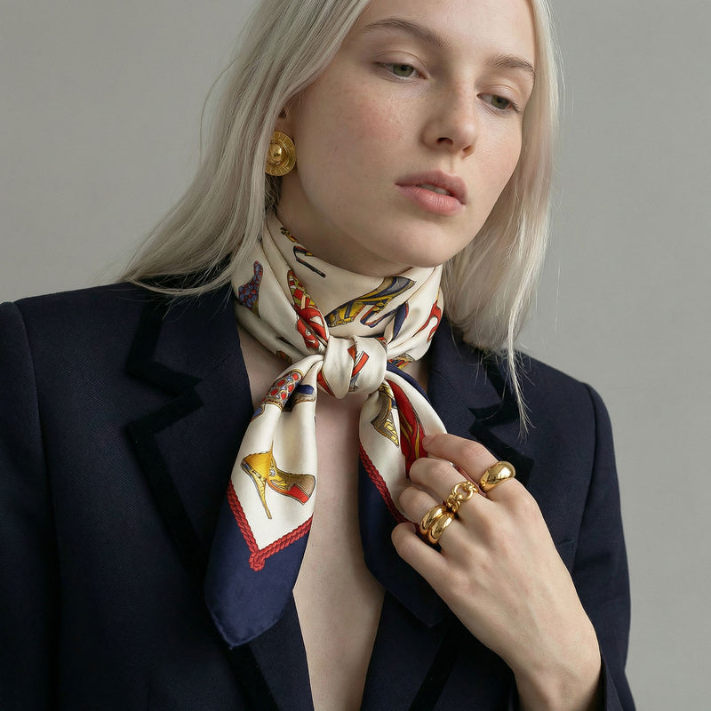 Foulard Vintage Christian Dior À Motif Bijoux Et Cordages Dorés