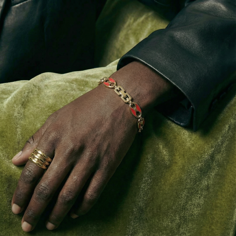Bracelet Givenchy Vintage Grain de Café XL en Plaqué Or et Émail Rouge