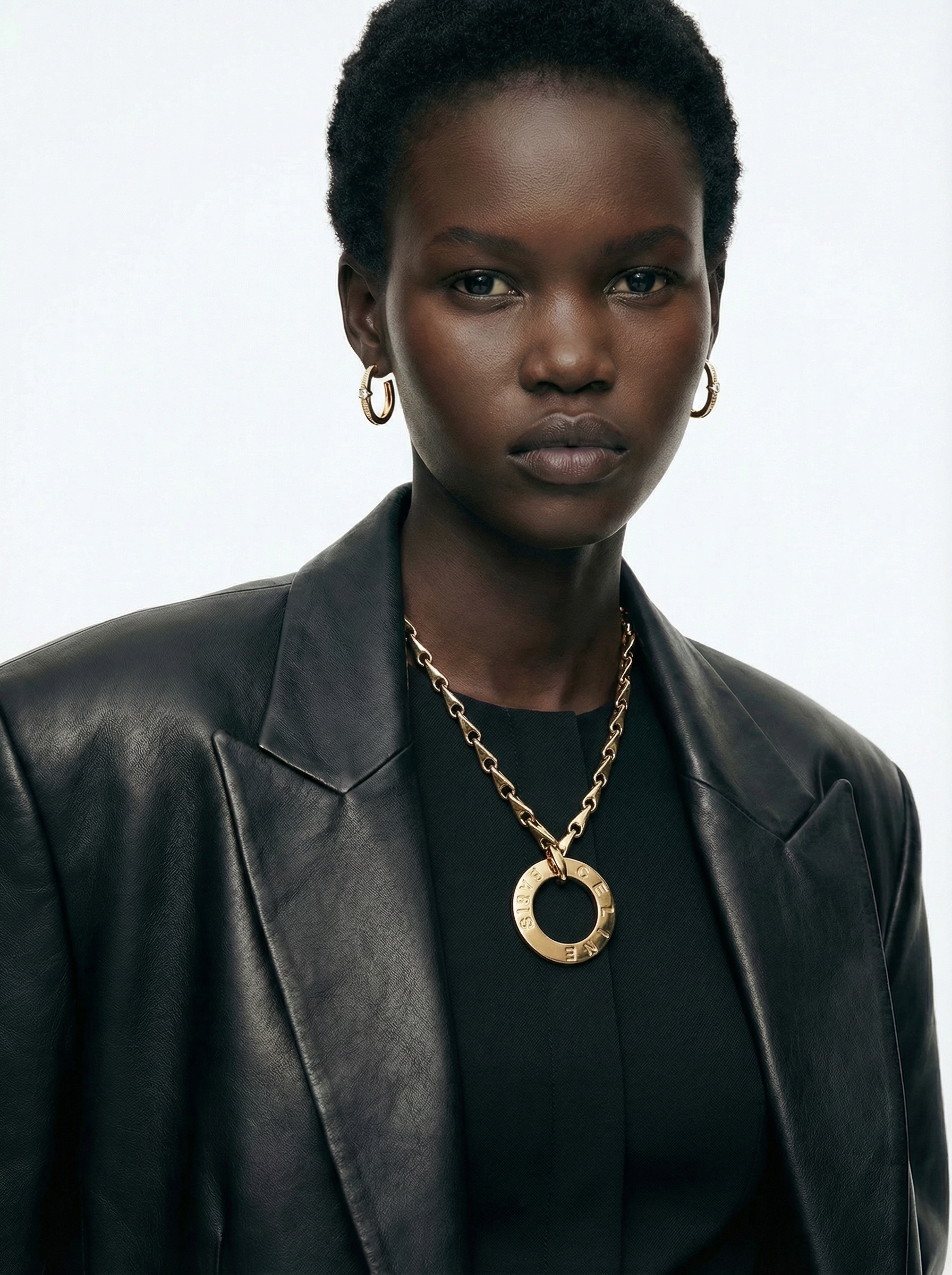 The necklace is composed of a beautiful gold-plated chain paired with a 5 cm pendant, giving it a distinctive, high-fashion look characteristic of the Maison Celine’s timeless aesthetic. At 58 cm long, it wears beautifully over sweaters, blazers, or simple dresses.