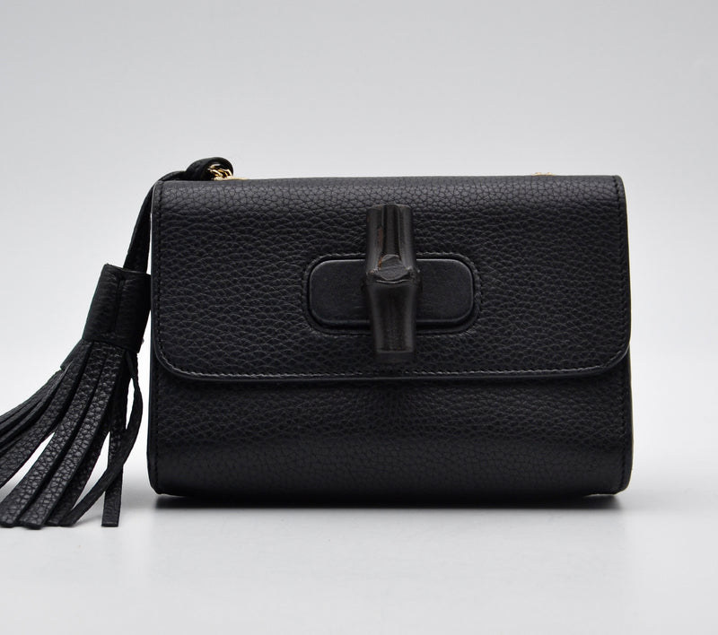 Sac Gucci Interlocking Mini Cuir Grainé Noir Chaîne Champagne