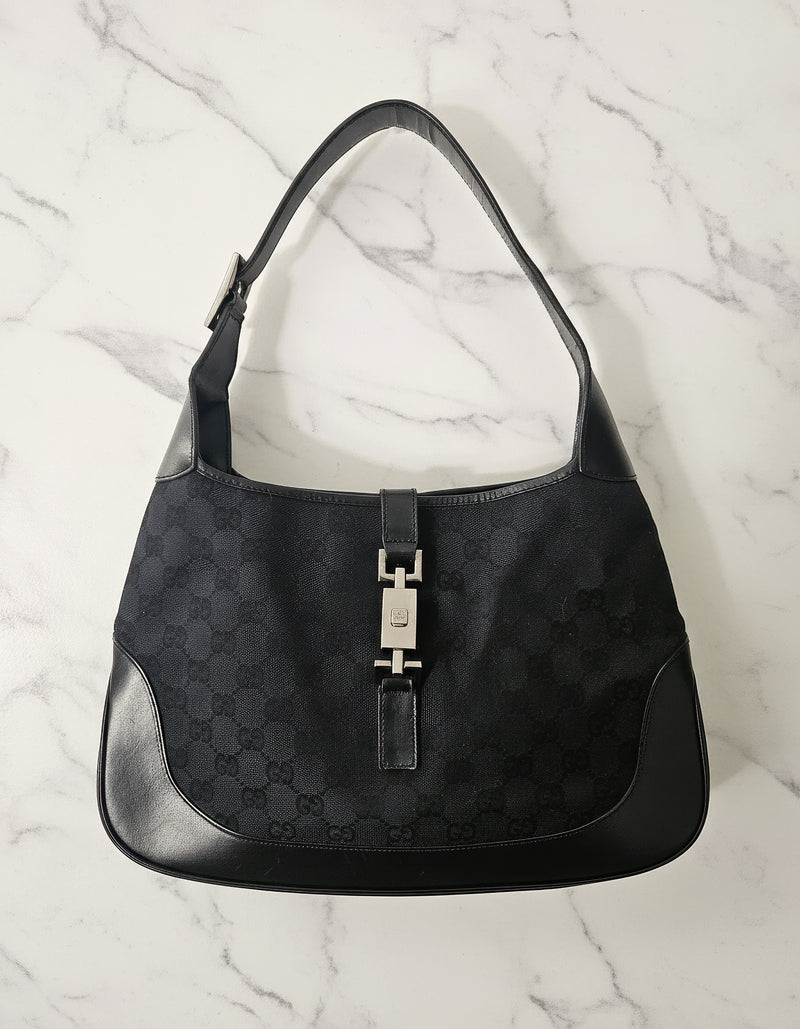 Gucci Jackie Bag – Black GG Canvas & Leather | Iconic Tom Ford Era Piece