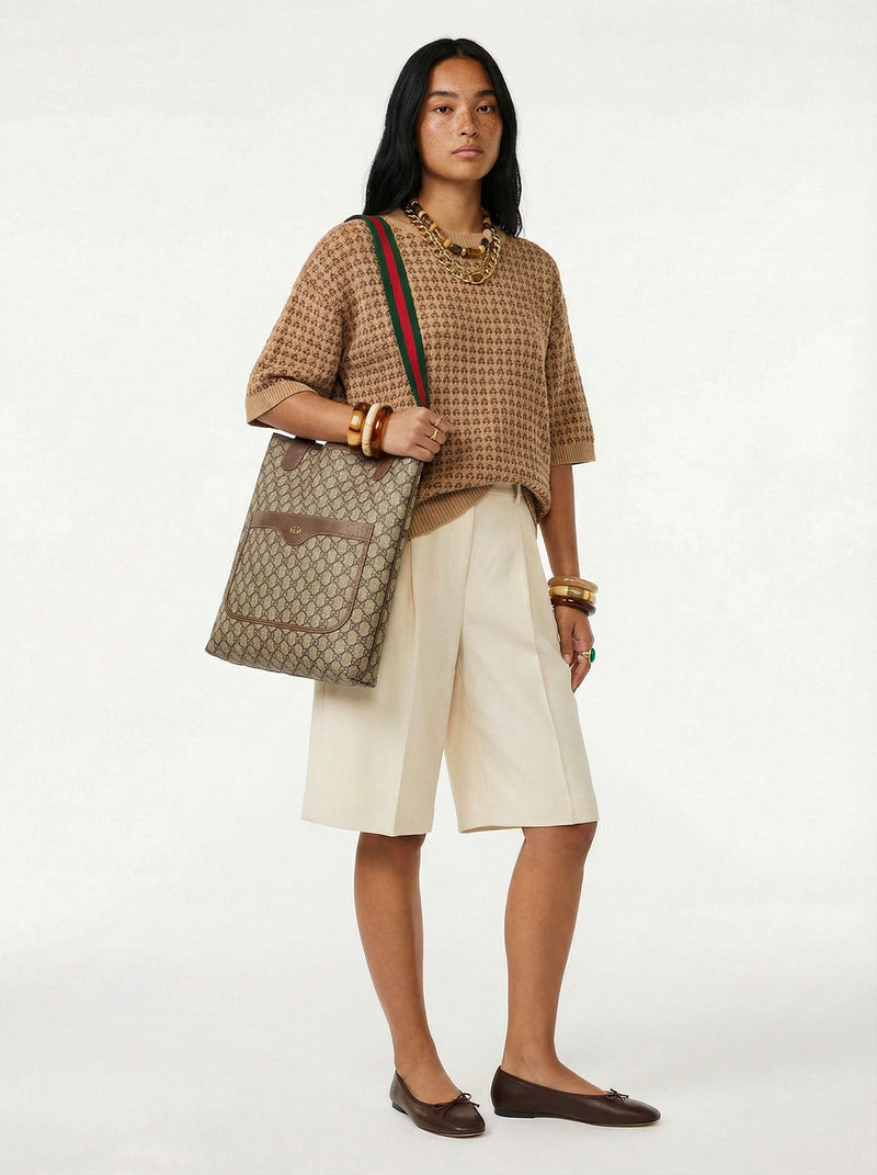 Sac Gucci Boston GG Supreme Cuir Marron Bandoulière