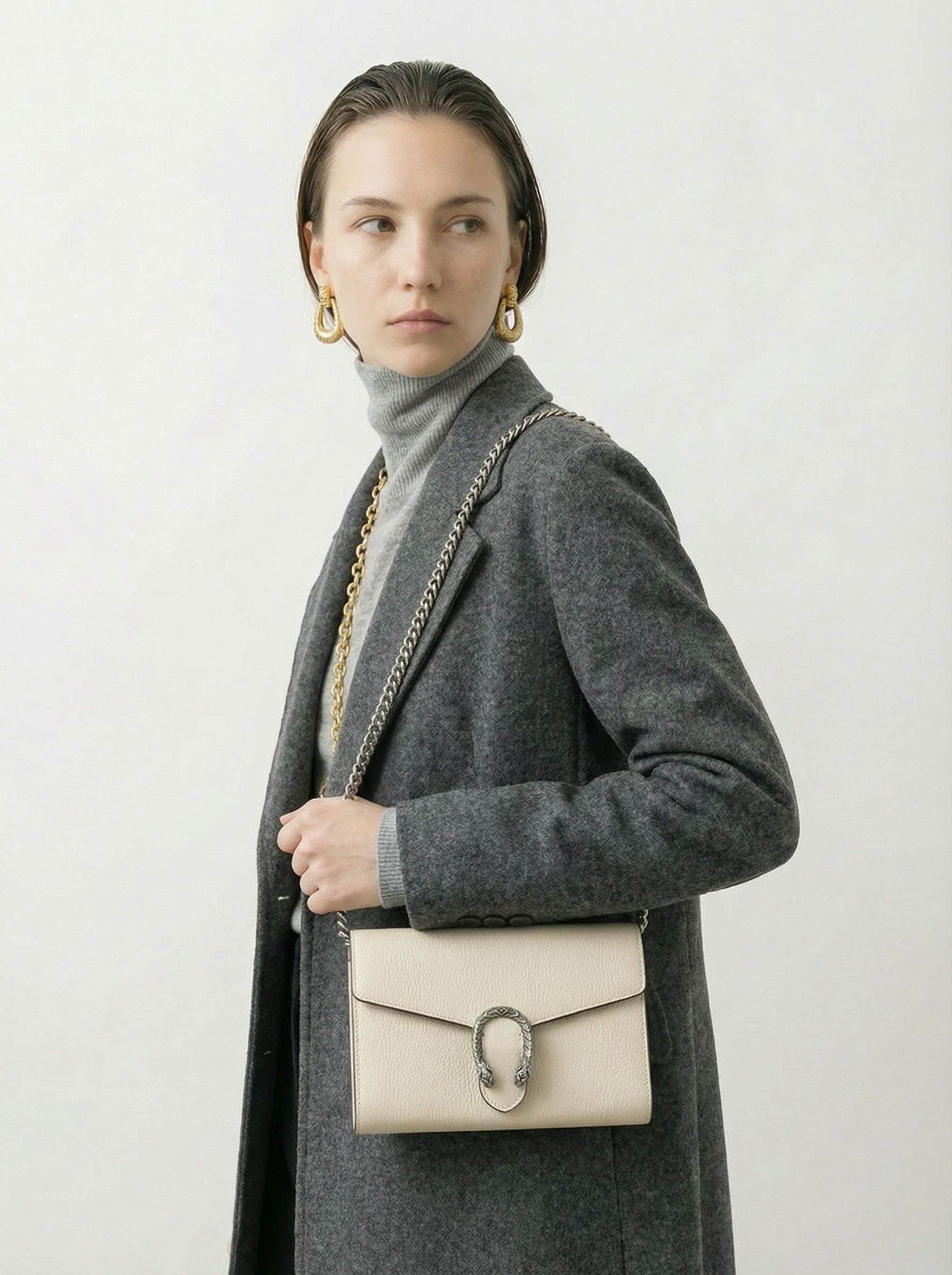 Polyvalent et élégant, ce Dionysus Wallet on Chain peut se porter aussi bien en crossbody qu’à l’épaule grâce à sa chaîne métallique. Compact mais pratique, il permet d’emporter l’essentiel tout en affirmant un style résolument luxueux.