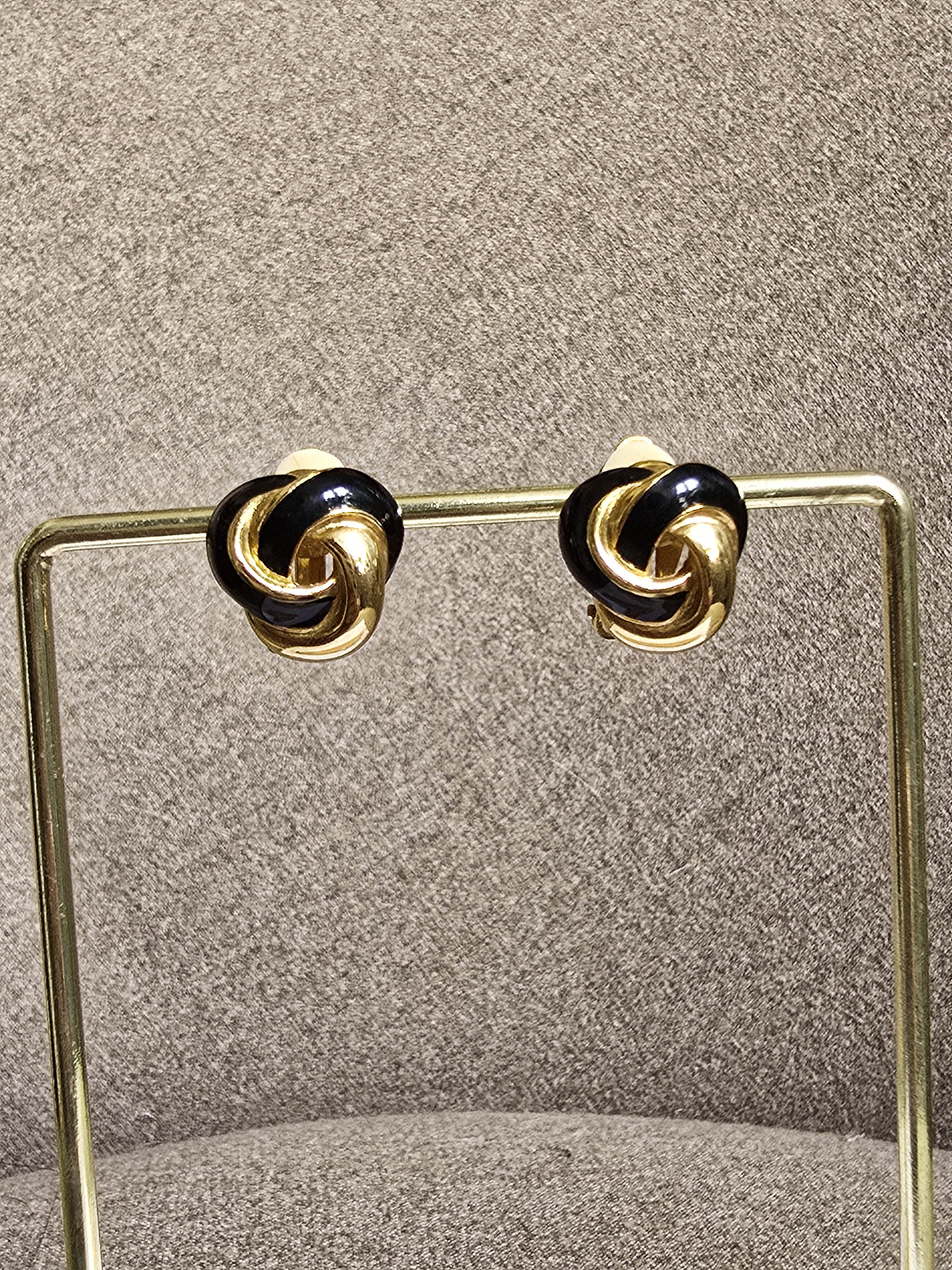These vintage Givenchy earrings are a chic and timeless accessory, showcasing the maison’s refined Parisian aesthetic. Crafted in polished gold-tone metal with glossy black enamel, they feature a sculptural knot design that symbolizes both strength and elegance. At 1.8 cm, they are compact yet eye-catching — ideal for adding a touch of sophistication to both day and evening looks.