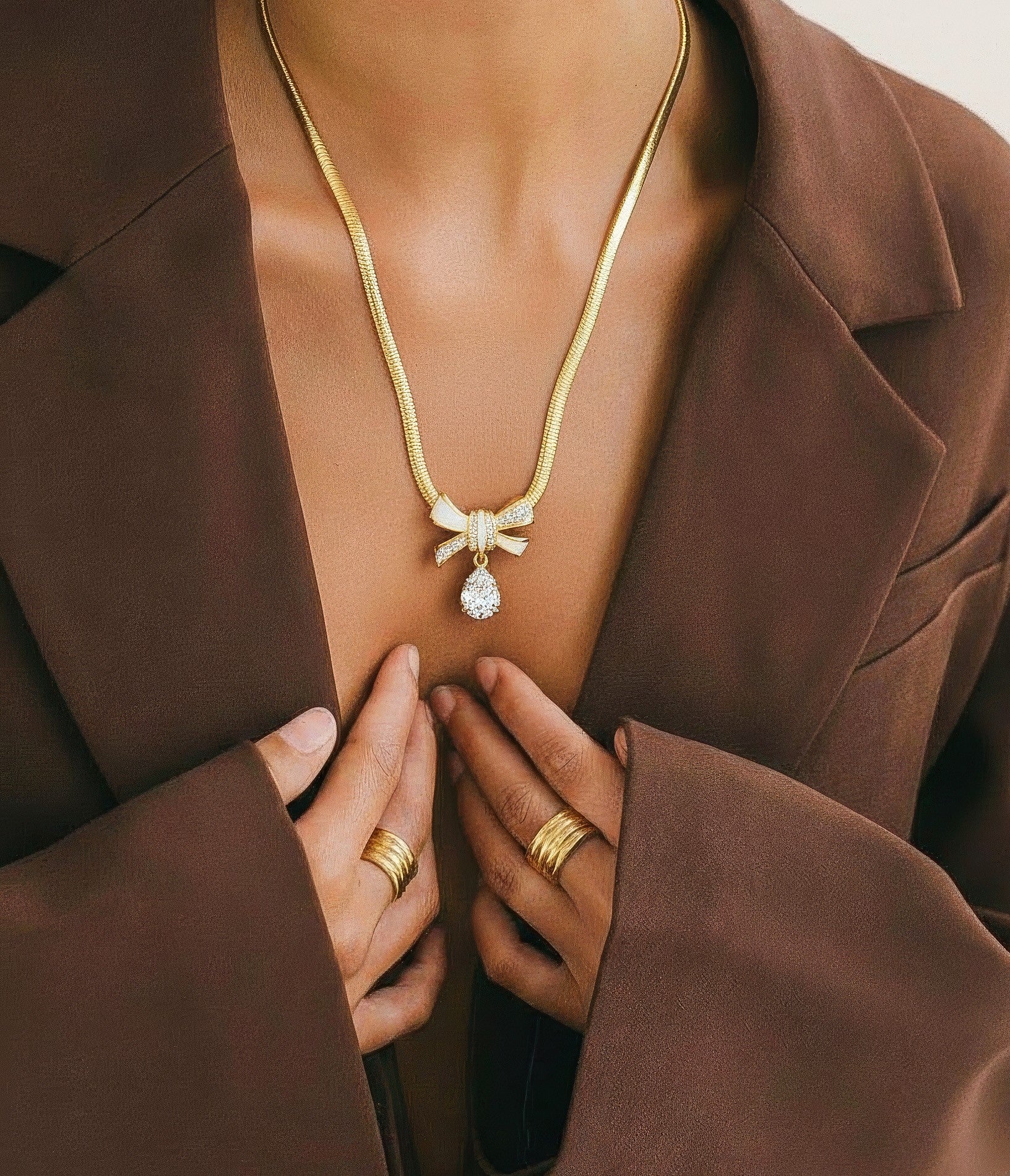 Givenchy Gold-Plated Necklace with Bow & Crystal Drop Pendant – Rarr.vintage