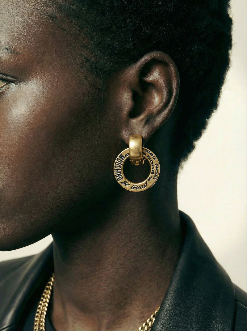 Moschino Vintage Gold Clip-On Earrings with Engraved Inscription