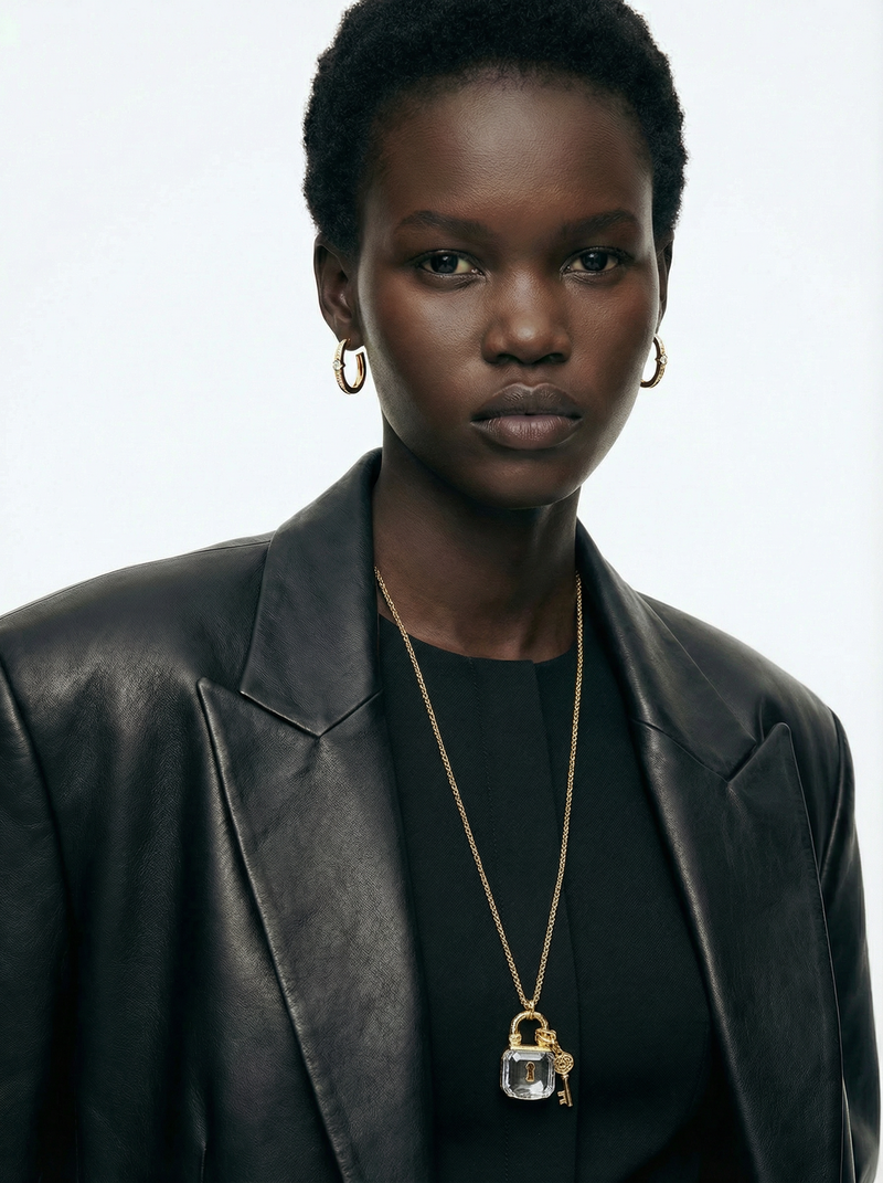 Swarovski Vintage Crystal Padlock & Key Sautoir Necklace