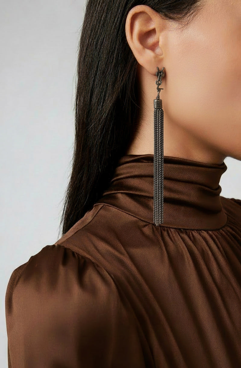 Yves Saint Laurent Silver-Tone Tassel Drop Earrings