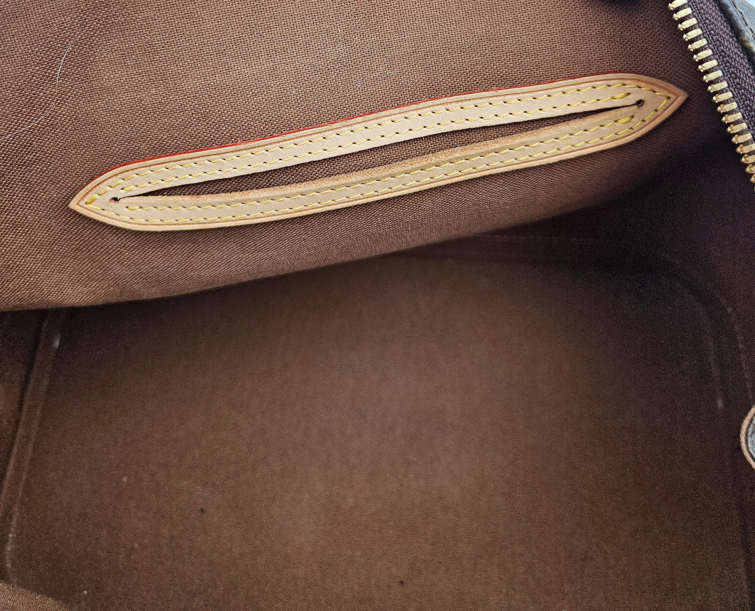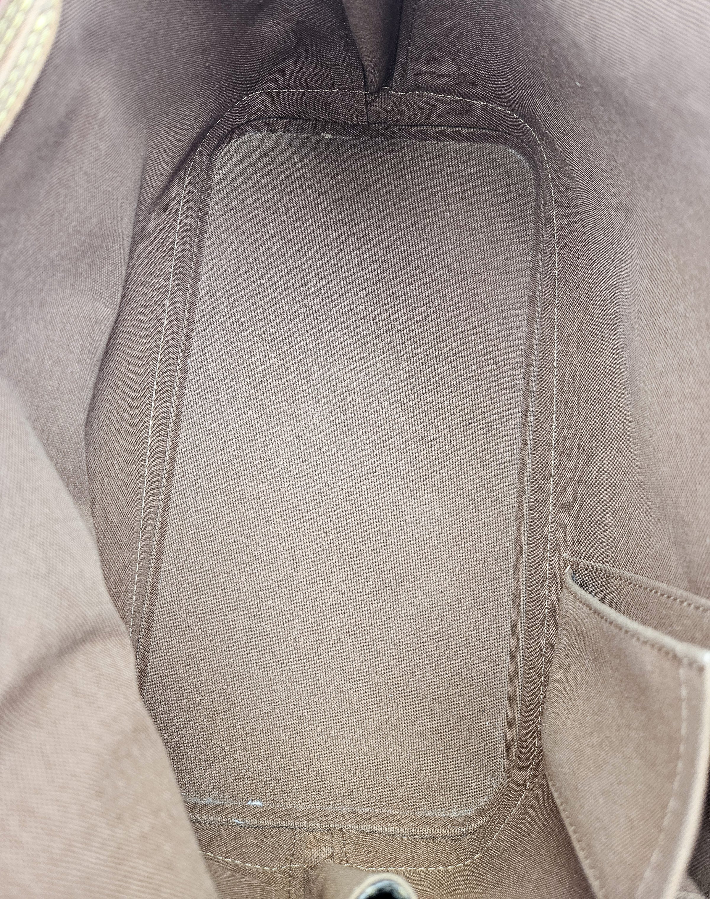 La toile Monogram est en très bel état, sans défaut majeur. Les détails en cuir de vachette présentent une belle patine claire et homogène, témoignant d’un vieillissement naturel et harmonieux. Les poignées affichent également une patine élégante. On note de légers frottements aux coins, discrets et cohérents avec une utilisation soignée. Le dessous du sac est en bon état.
