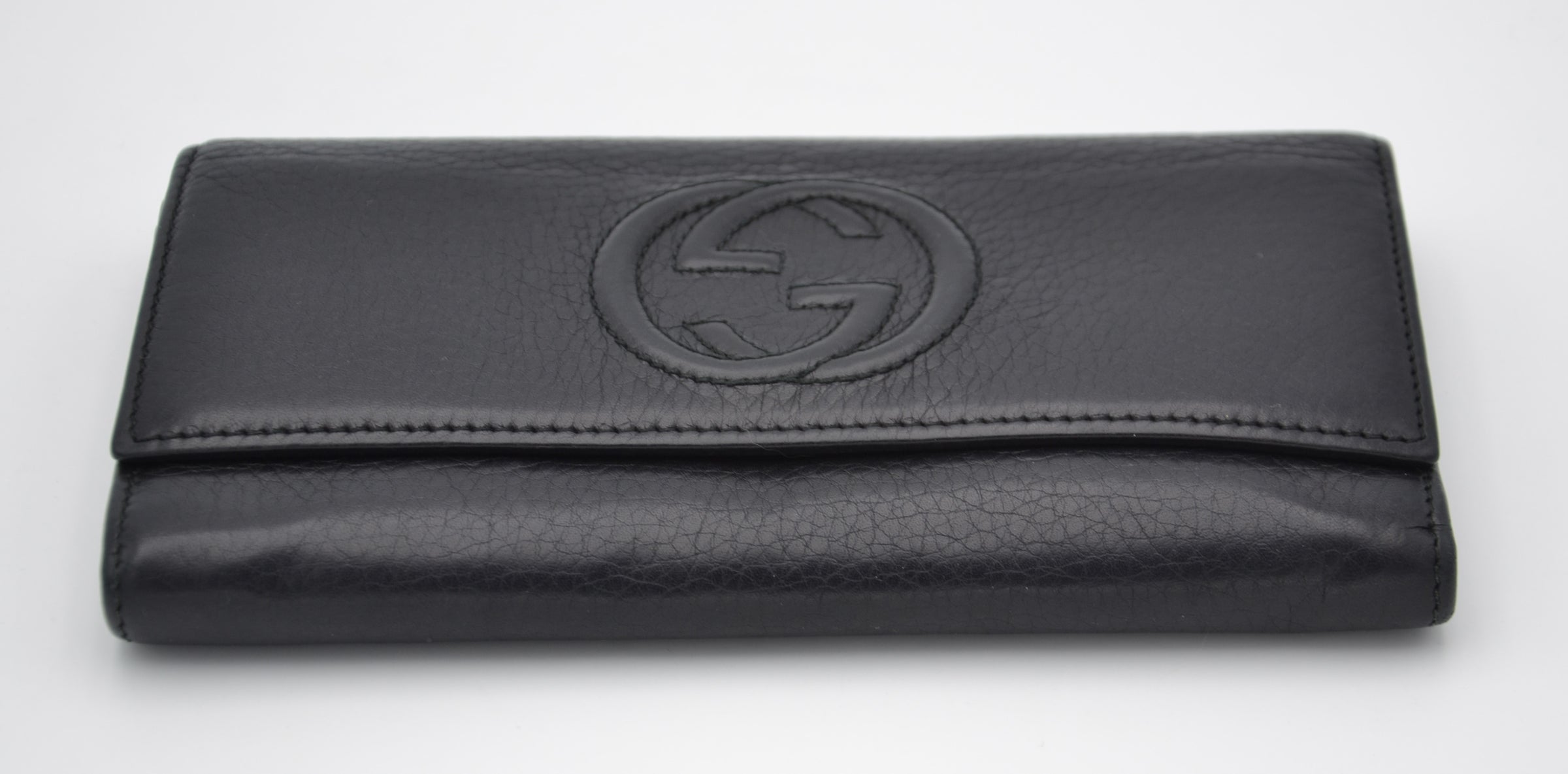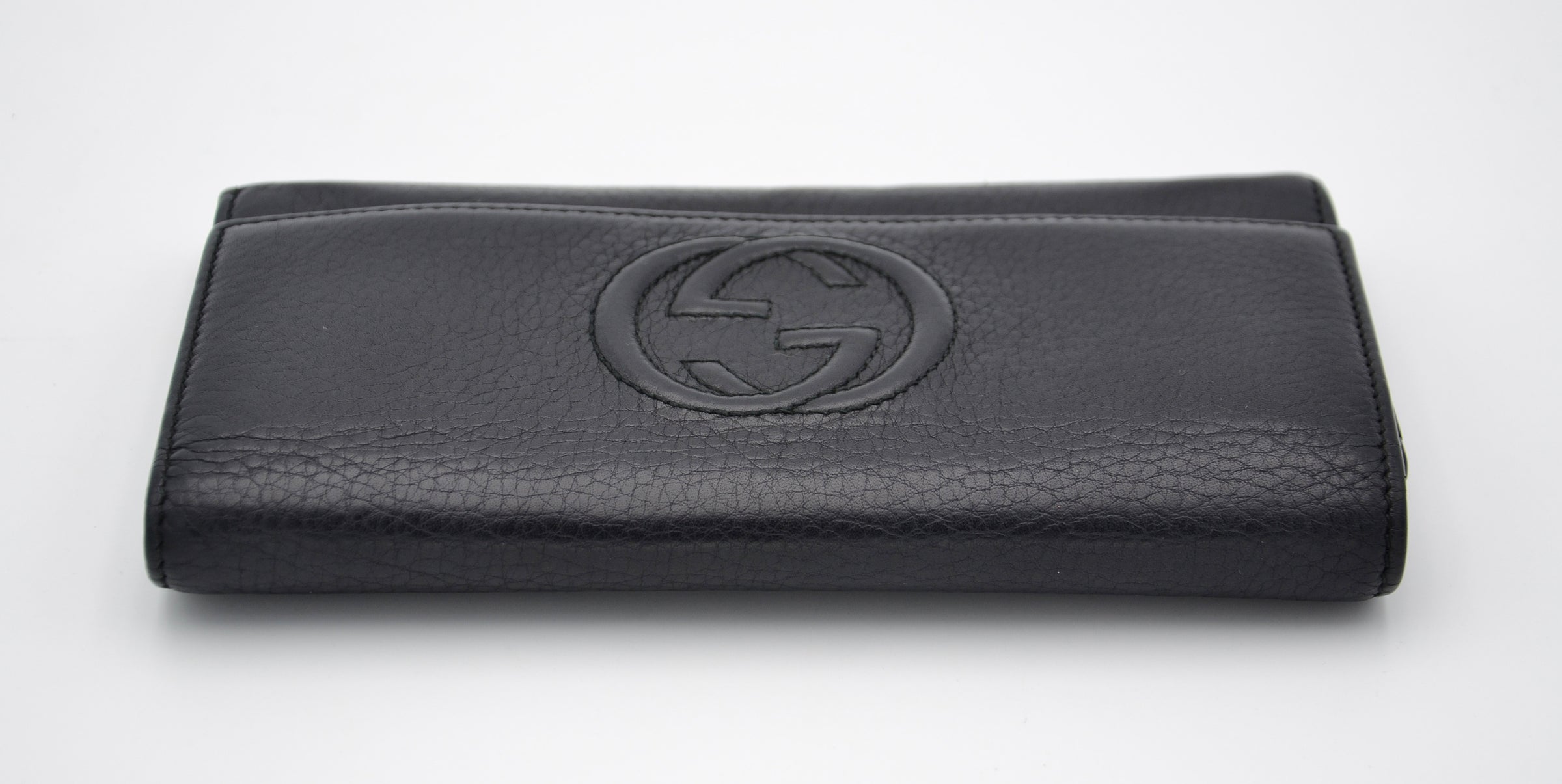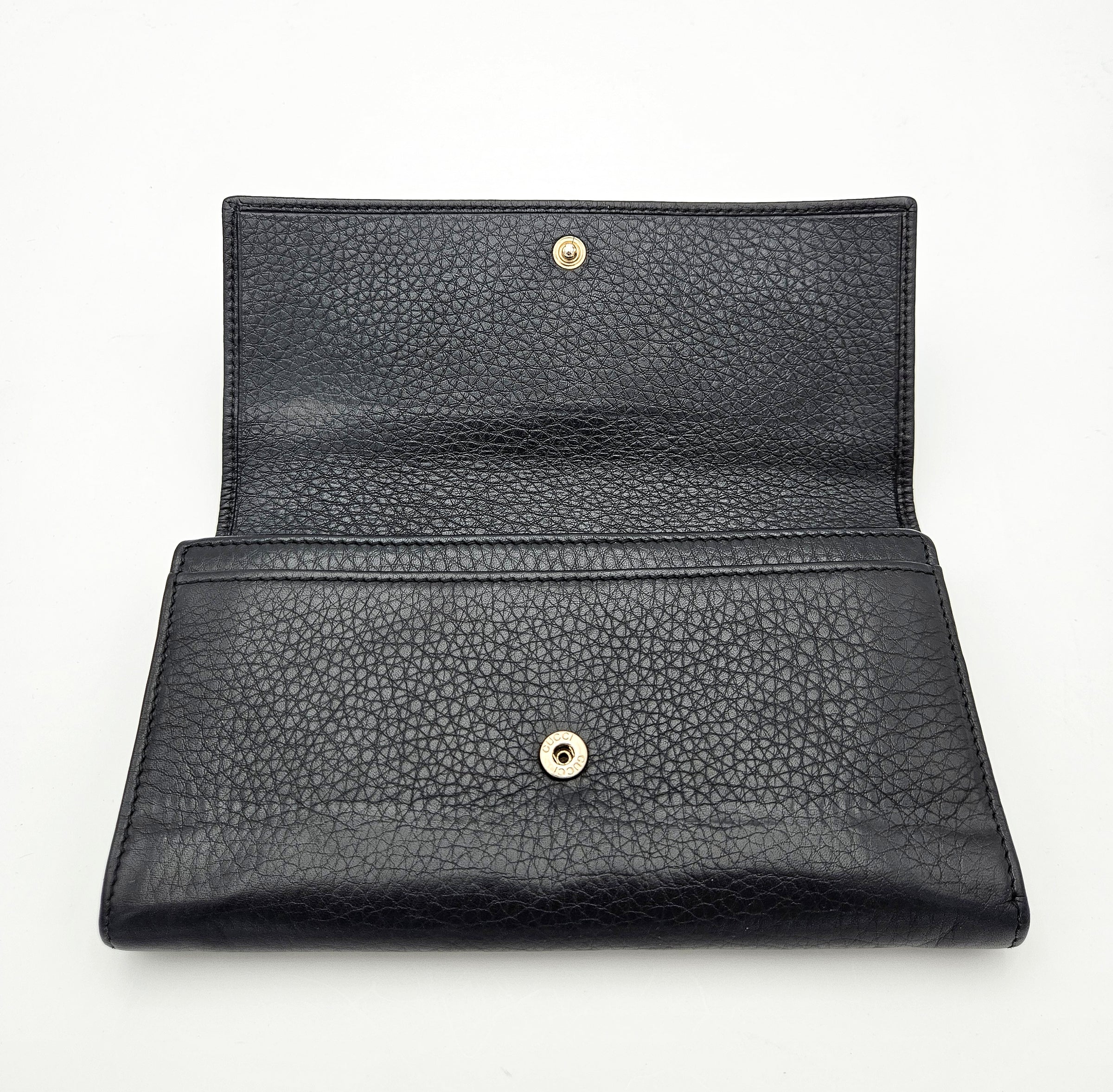 Ce portefeuille long Gucci en cuir grainé noir est un accessoire élégant et fonctionnel, idéal pour un usage quotidien. Le logo GG embossé sur le devant souligne l’authenticité et le prestige de la maison, tandis que l’intérieur bien organisé avec poche à monnaie zippée, 10 fentes pour cartes et deux compartiments à billets garantit un rangement pratique et sécurisé.