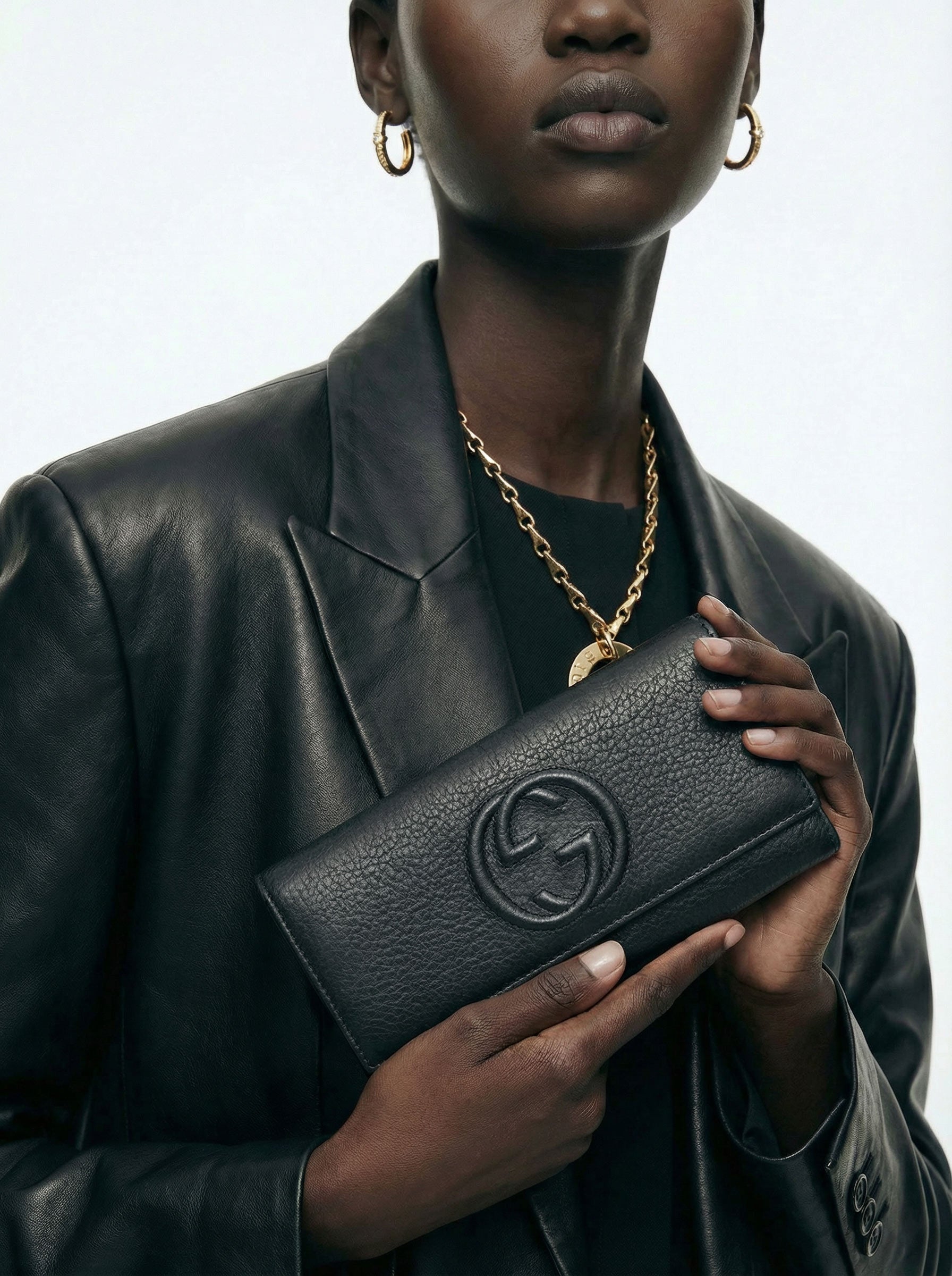 Malgré de légers signes d’usure sur les coins et les tranches, le cuir reste propre et en bon état général, témoignant d’un soin apporté à cet accessoire. Fabriqué en Italie, ce portefeuille reflète le savoir-faire artisanal et le design raffiné qui caractérisent Gucci, alliant fonctionnalité, élégance et style intemporel.