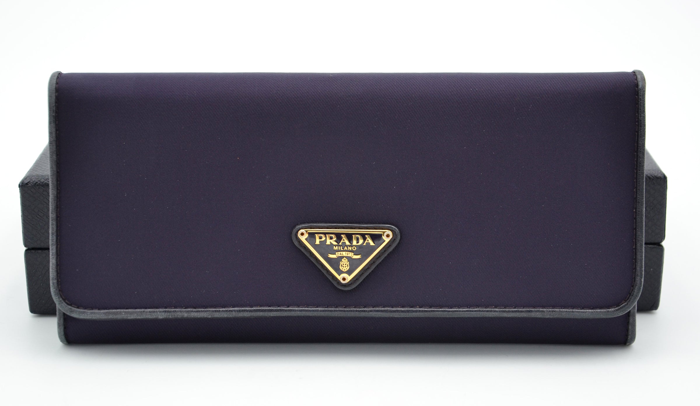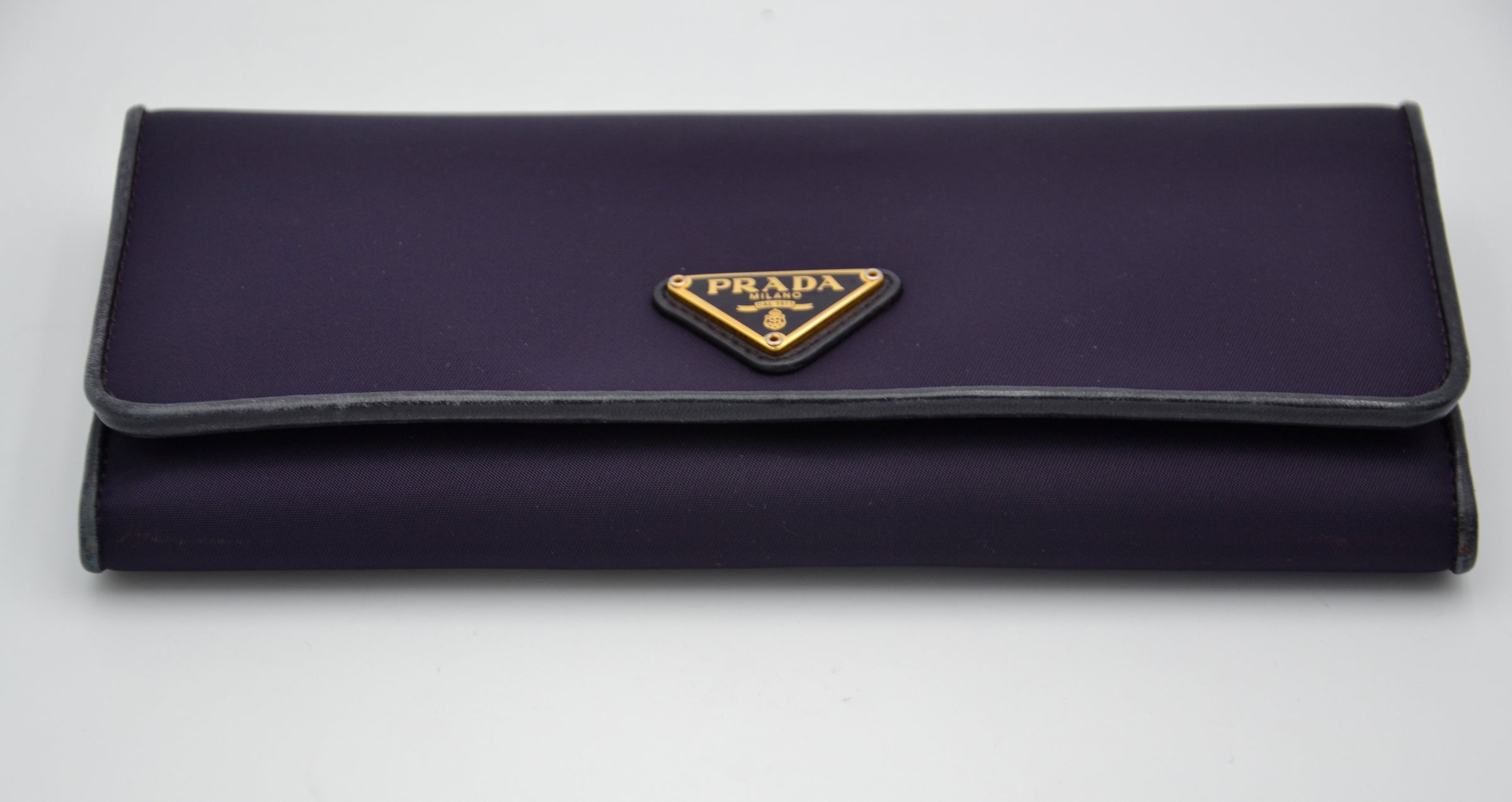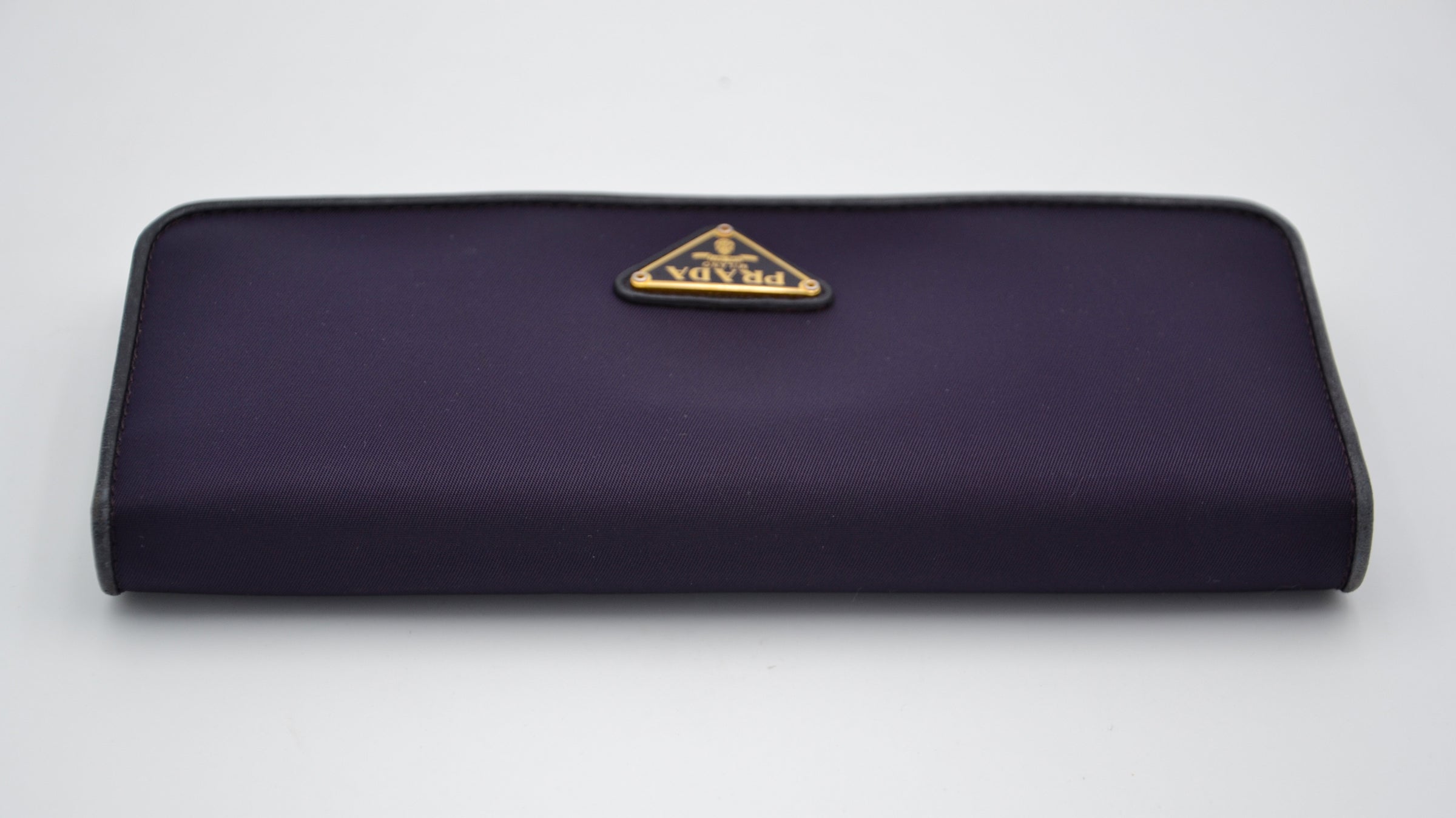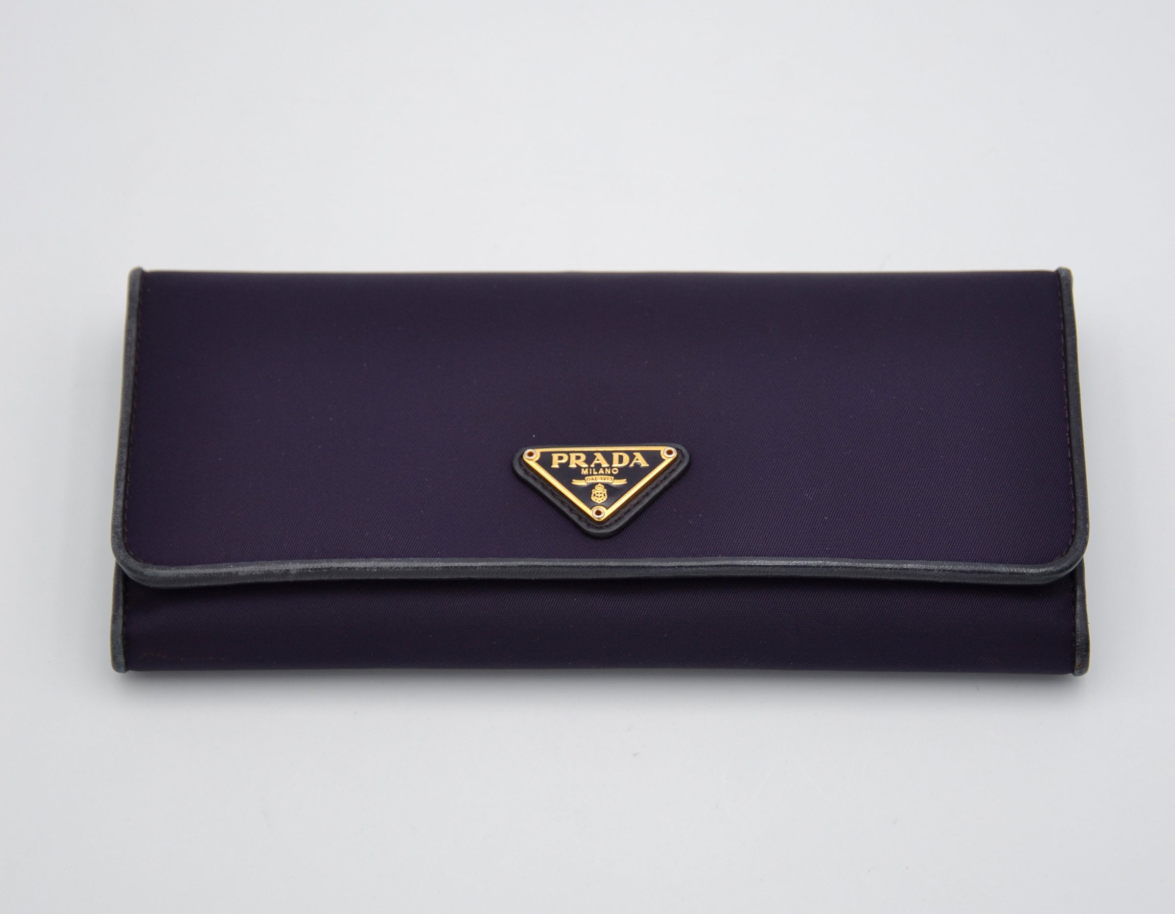 Portefeuille long Prada en nylon violet & cuir noir – Rarr.vintage
