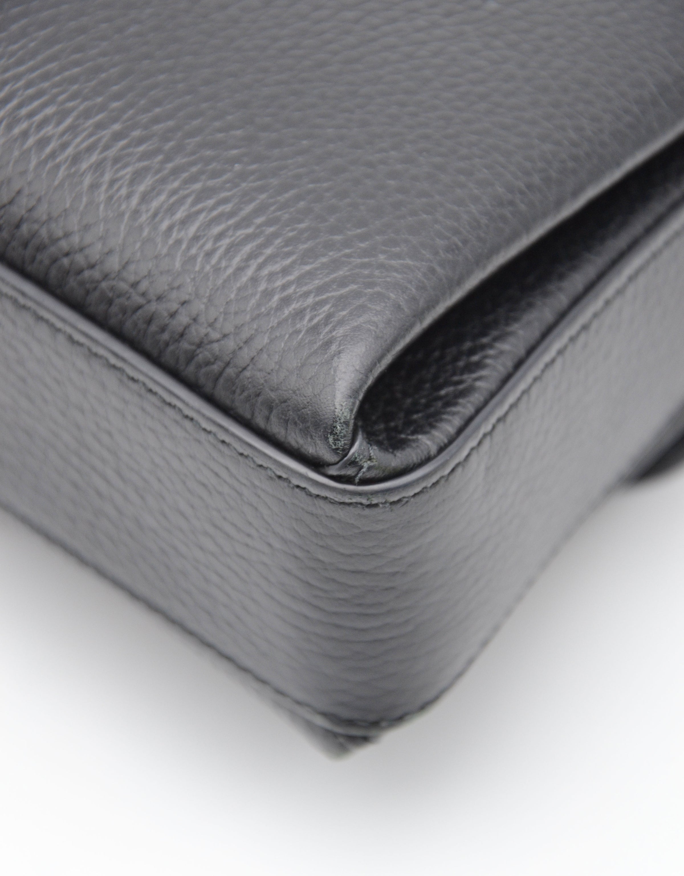 Le cuir grainé est en bon état, sans défauts majeurs. Les coins présentent de légers frottements et la bijouterie champagne affiche de fines micro rayures, signes d'une utilisation soignée. L'intérieur est propre avec quelques mini taches visibles sur les photos.