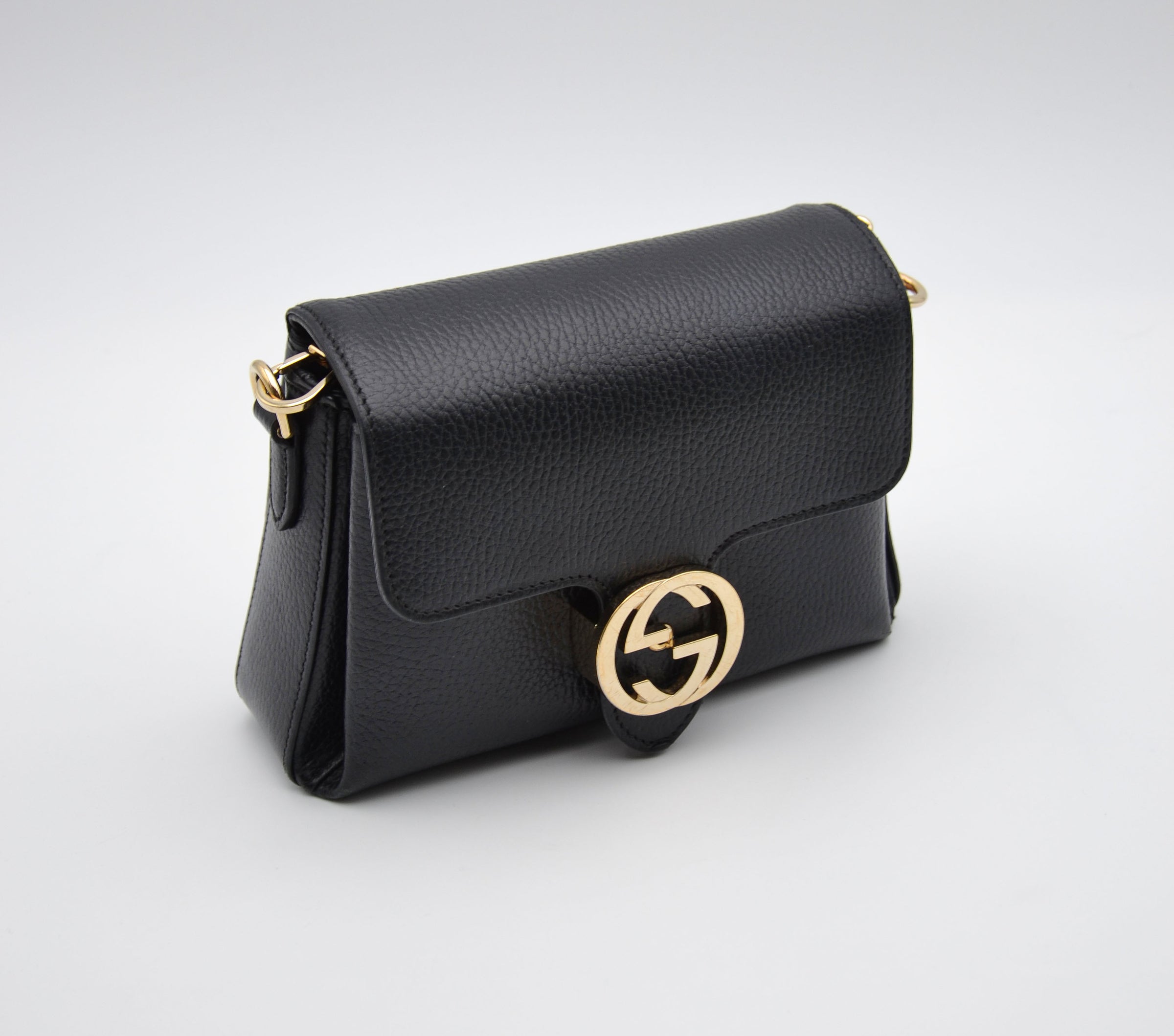 Sac Gucci Interlocking Mini Cuir Grainé Noir Chaîne Champagne – Rarr.vintage
