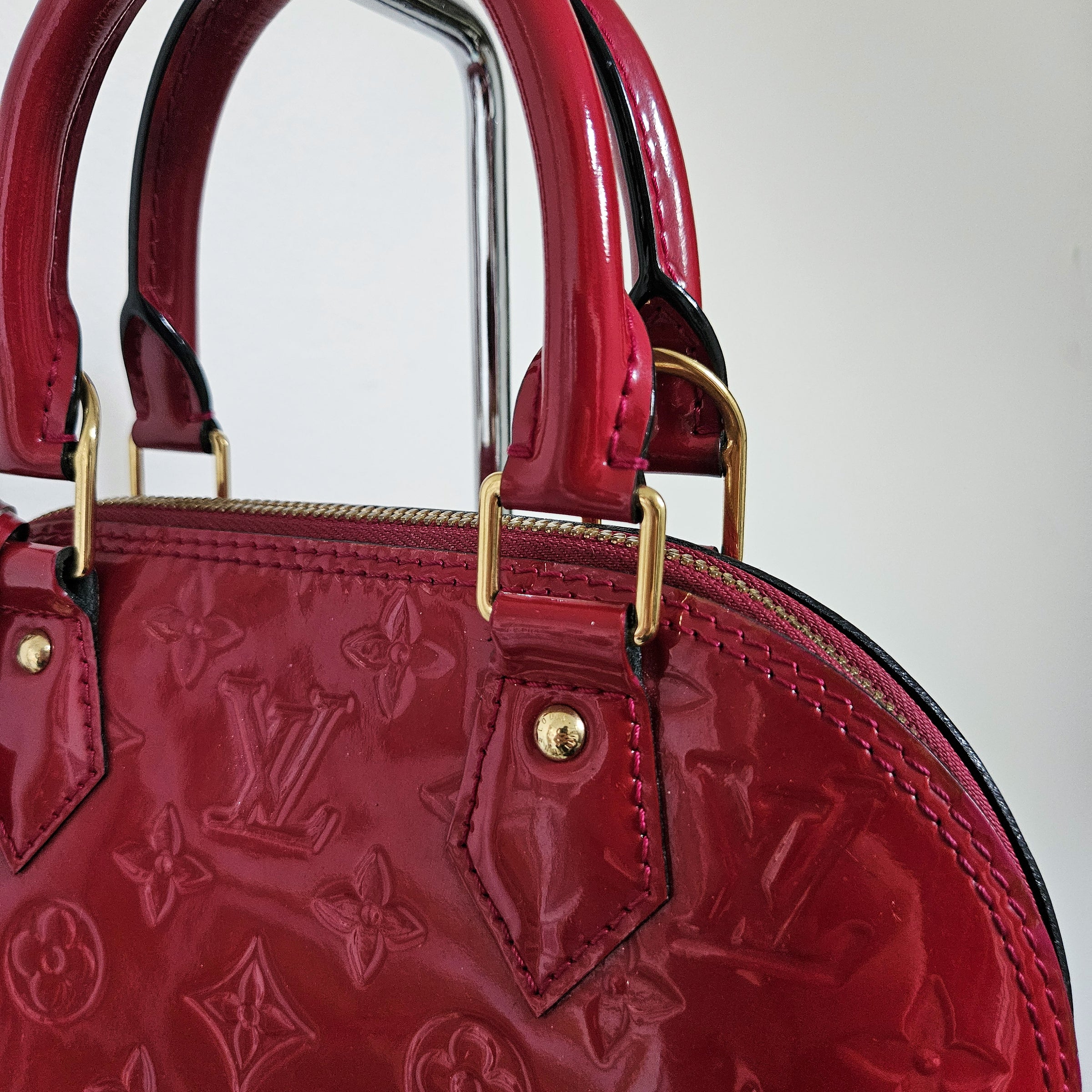 Le Louis Vuitton Alma BB en cuir vernis rouge est une pièce culte de la maison, alliant allure intemporelle et savoir-faire français. Confectionné Made in France, ce modèle séduit par sa silhouette structurée, son cuir verni brillant et sa bijouterie dorée qui reflète subtilement la lumière.