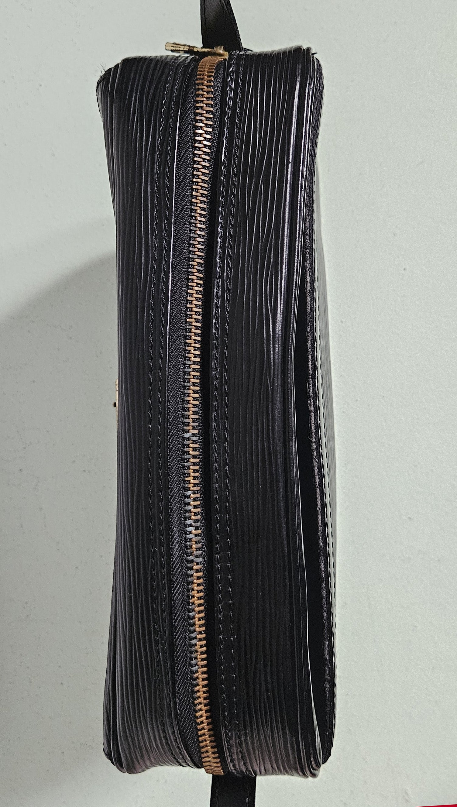 Ce sac Louis Vuitton en cuir Épi noir est une pièce élégante et intemporelle, symbole du savoir-faire artisanal de la maison française. Réalisé dans le célèbre cuir Épi — résistant, texturé et raffiné — il offre une allure à la fois sobre et sophistiquée. Sa forme structurée et sa finition dorée ajoutent une touche de luxe discret, typique des créations Louis Vuitton.