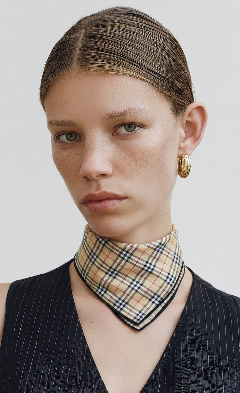 Hermès Triangle Scarf – Ribbon Motif in Neutrals
