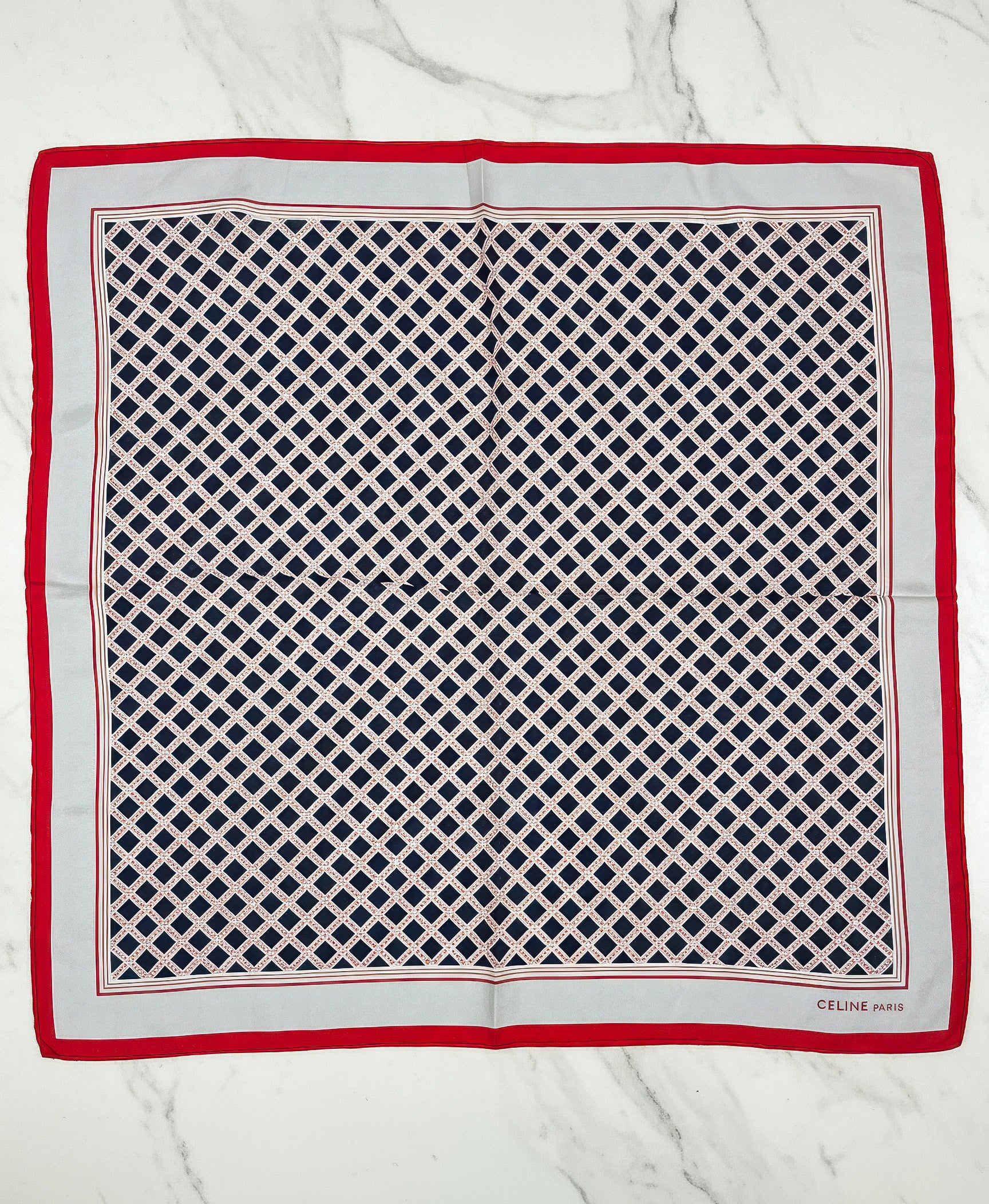 Perfect for wearing around the neck, in your hair, or tied to a bag handle, this scarf brings classic Celine style to your everyday wardrobe.