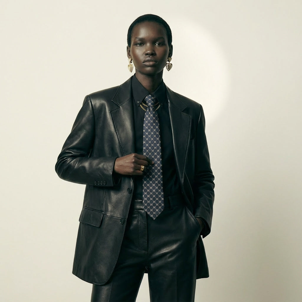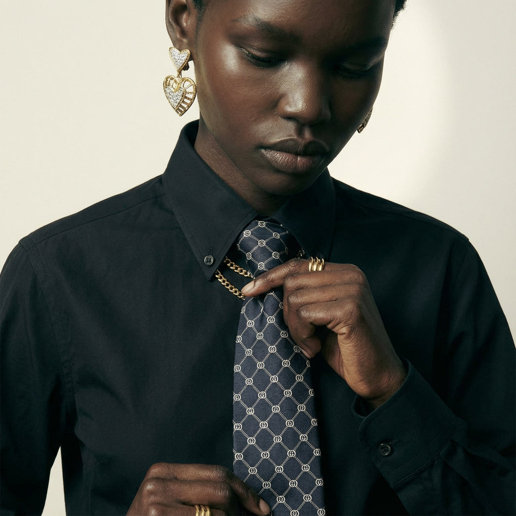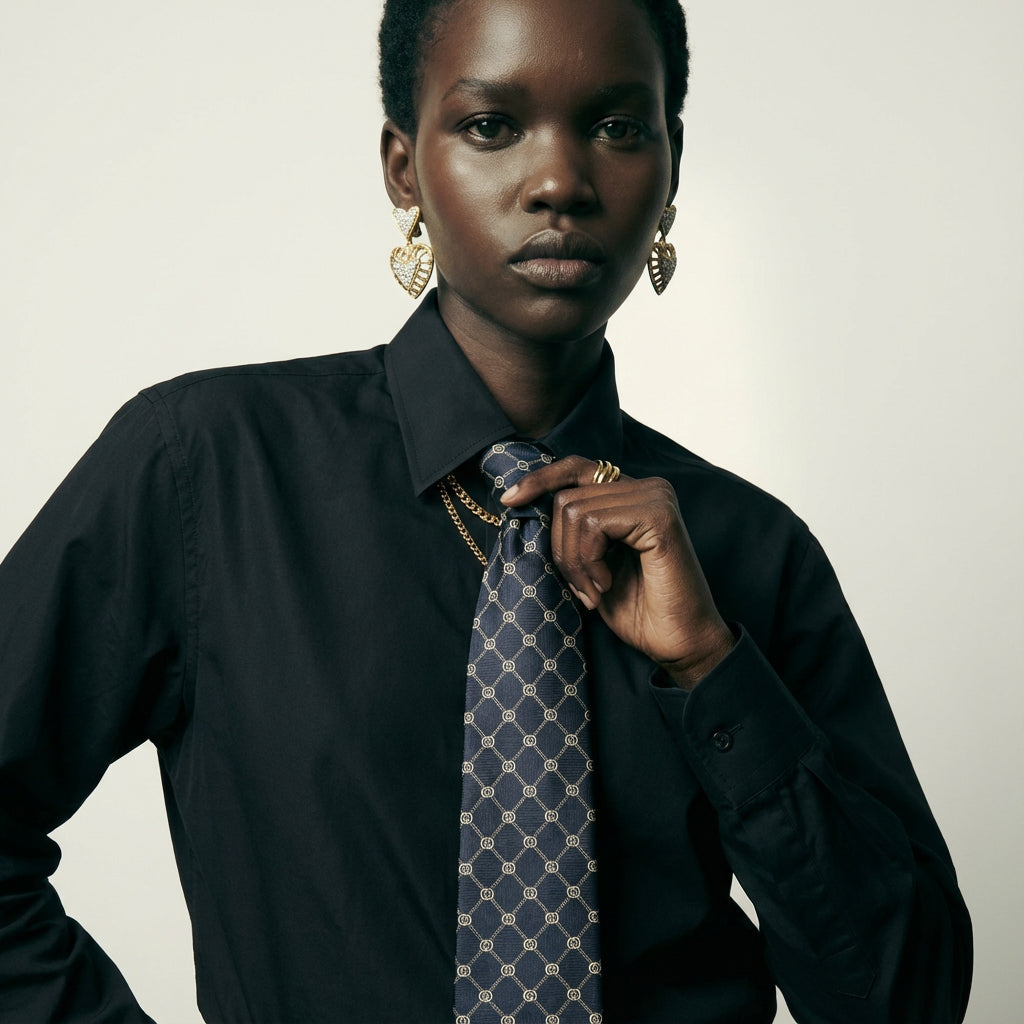 This vintage Gucci tie showcases the house’s refined approach to menswear accessories. Crafted in pure silk, it features a navy blue background adorned with a repeating GG logo grid in white — a subtle yet instantly recognizable nod to Gucci’s heritage.