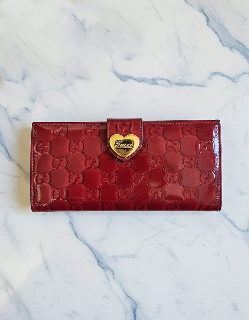 Gucci Red Patent Leather Heart Long Wallet