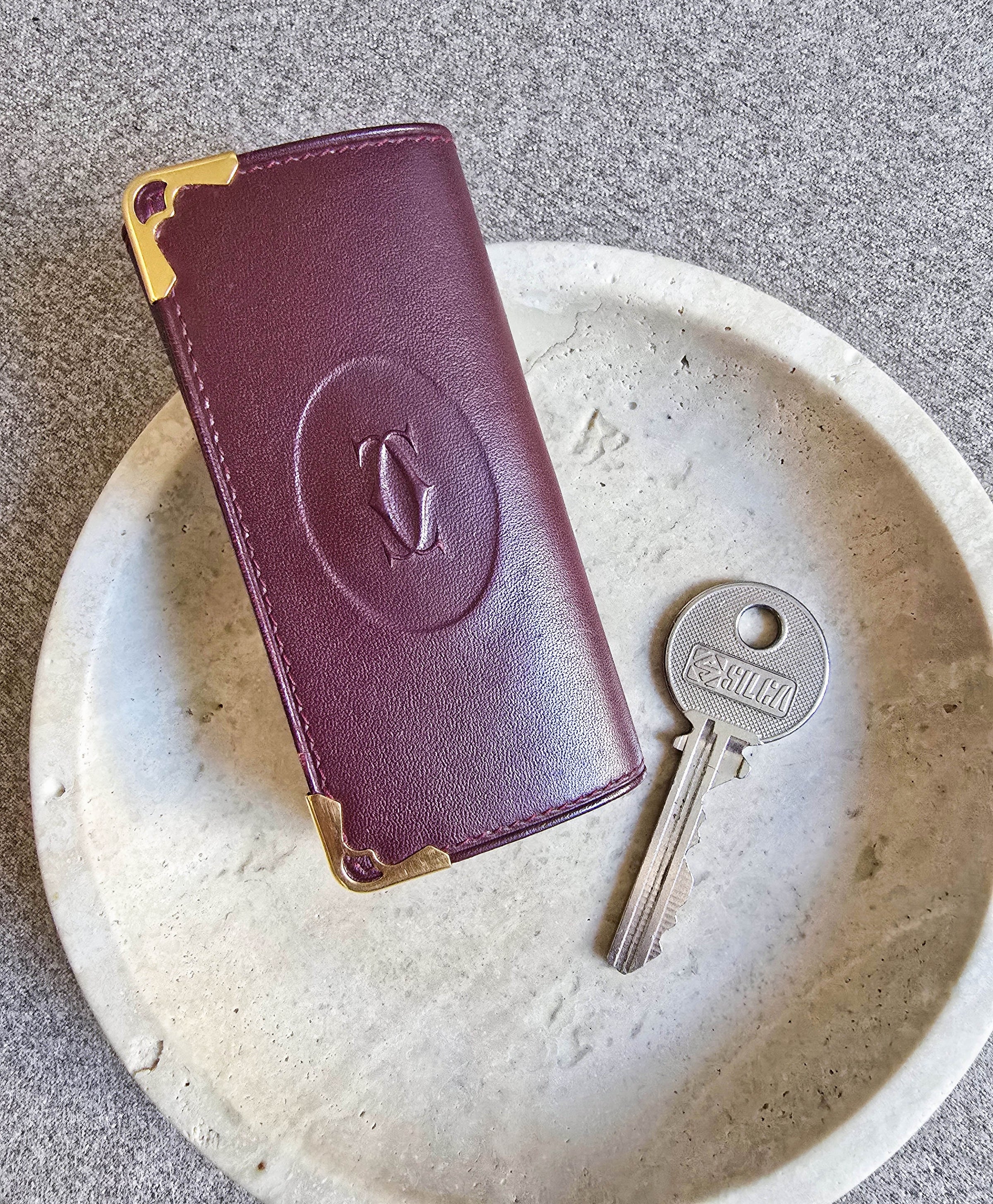 Porté clé multi clé Cartier en cuir lisse bordeaux et bijouterie dorée – Rarr.vintage