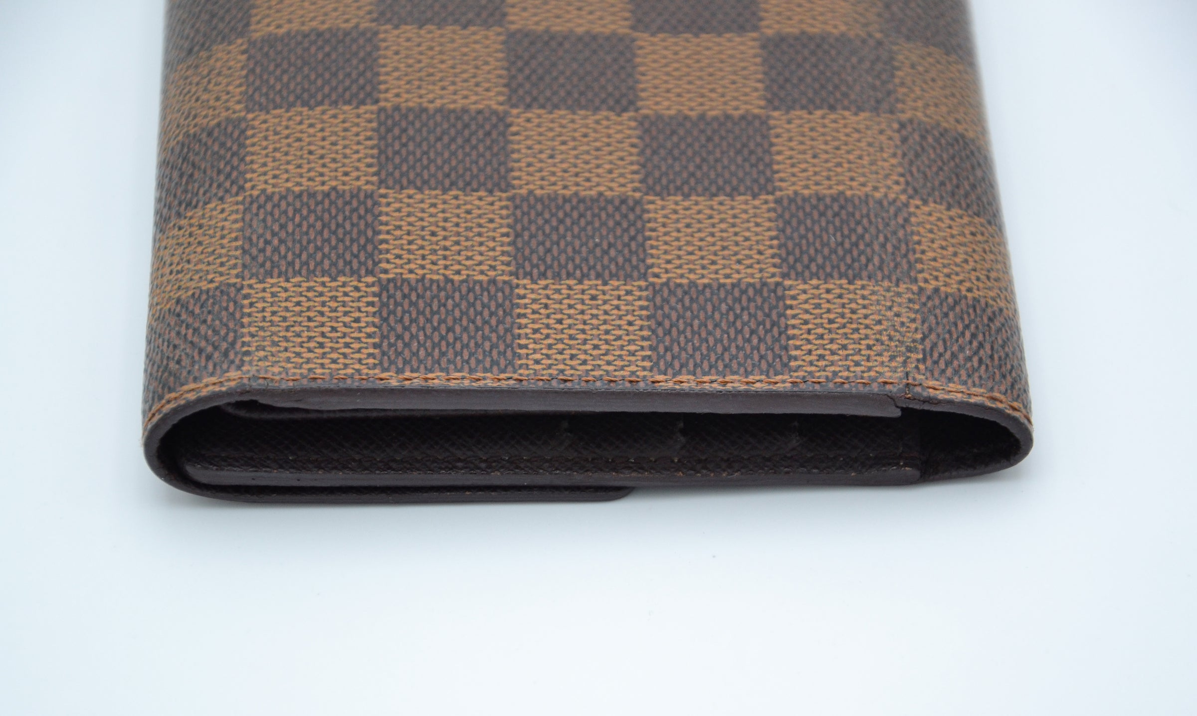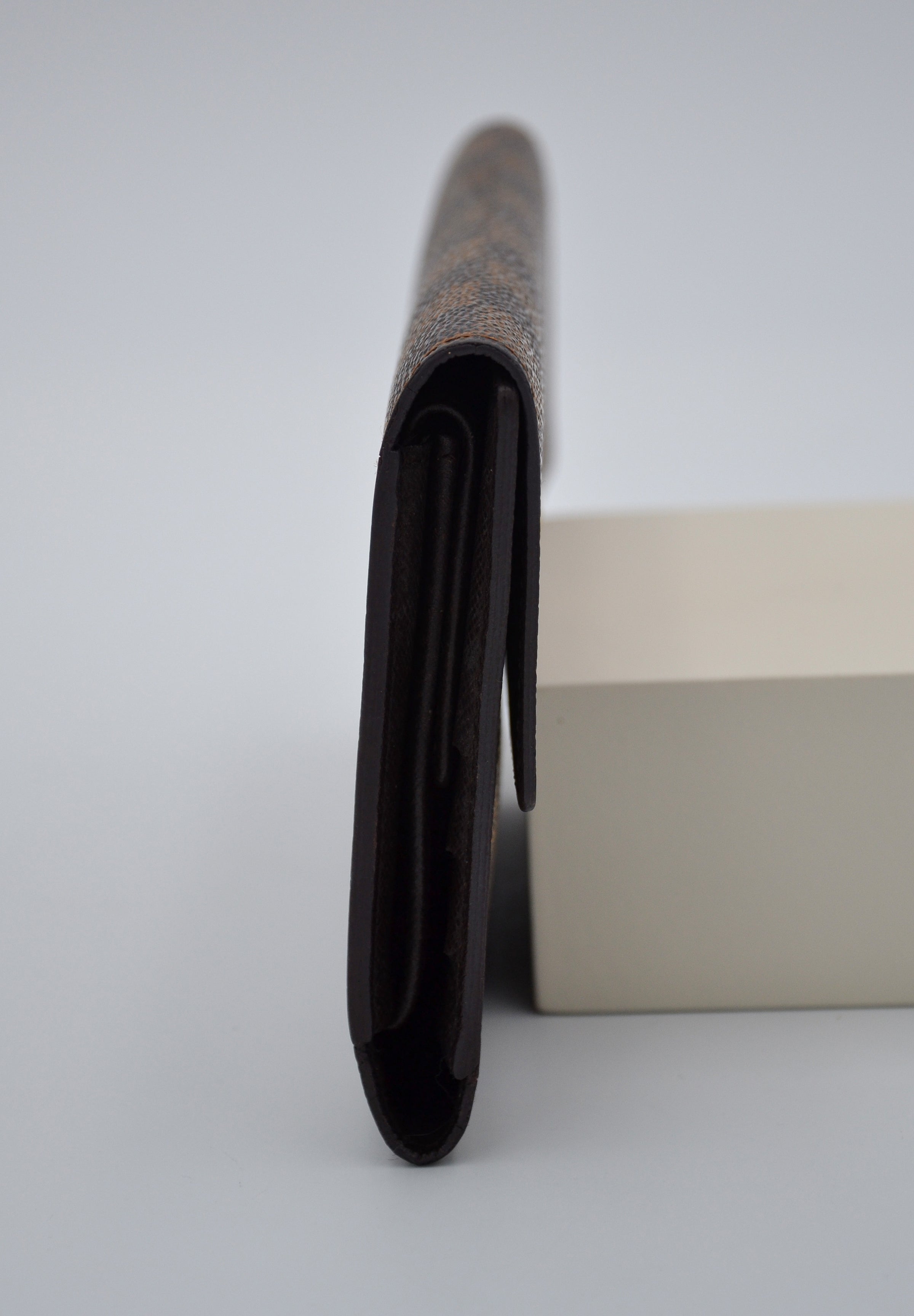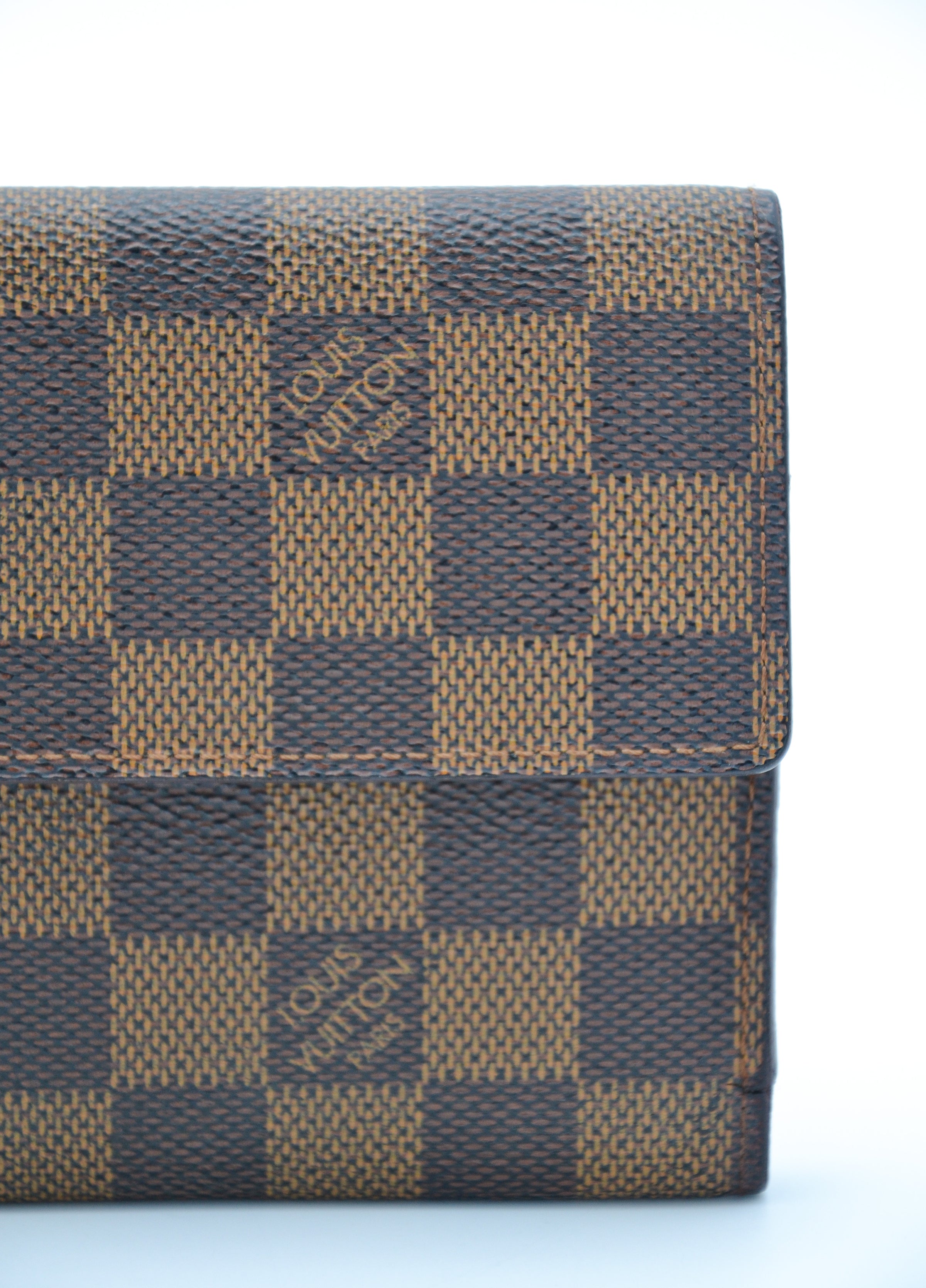 Ce portefeuille long Louis Vuitton en toile enduite Damier Ébène est un accessoire raffiné et fonctionnel, alliant élégance et durabilité. La toile emblématique Damier Ébène, propre et bien conservée, souligne le savoir-faire de la maison, tandis que la fermeture par bouton pression garantit un usage sécurisé. L’intérieur reste propre avec des fentes pour cartes et une poche à monnaie bien agencée, témoignant de l’attention portée aux détails. Les coins présentent de légers signes d’usure, ajoutant un charme discret sans altérer la fonctionnalité du portefeuille.