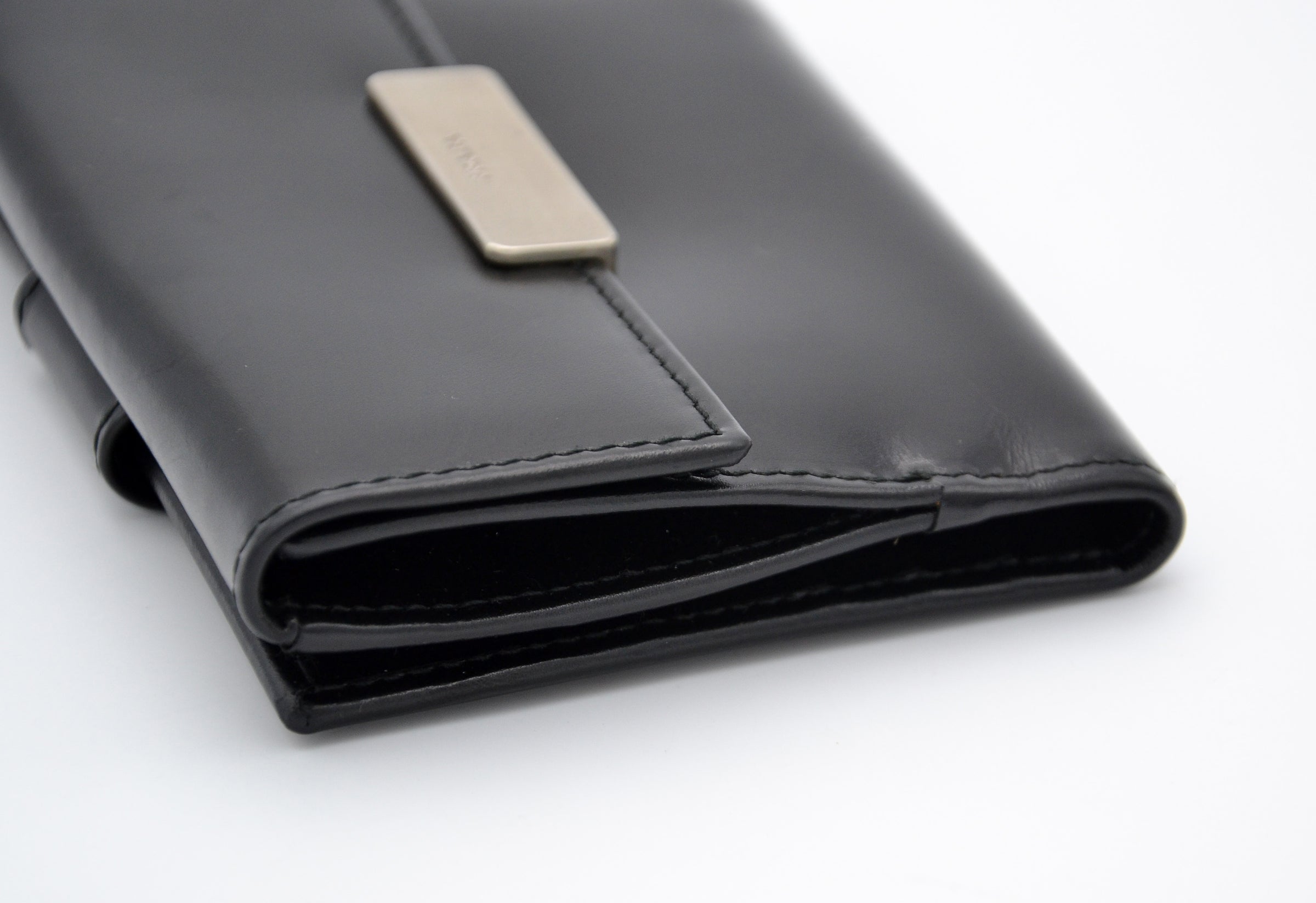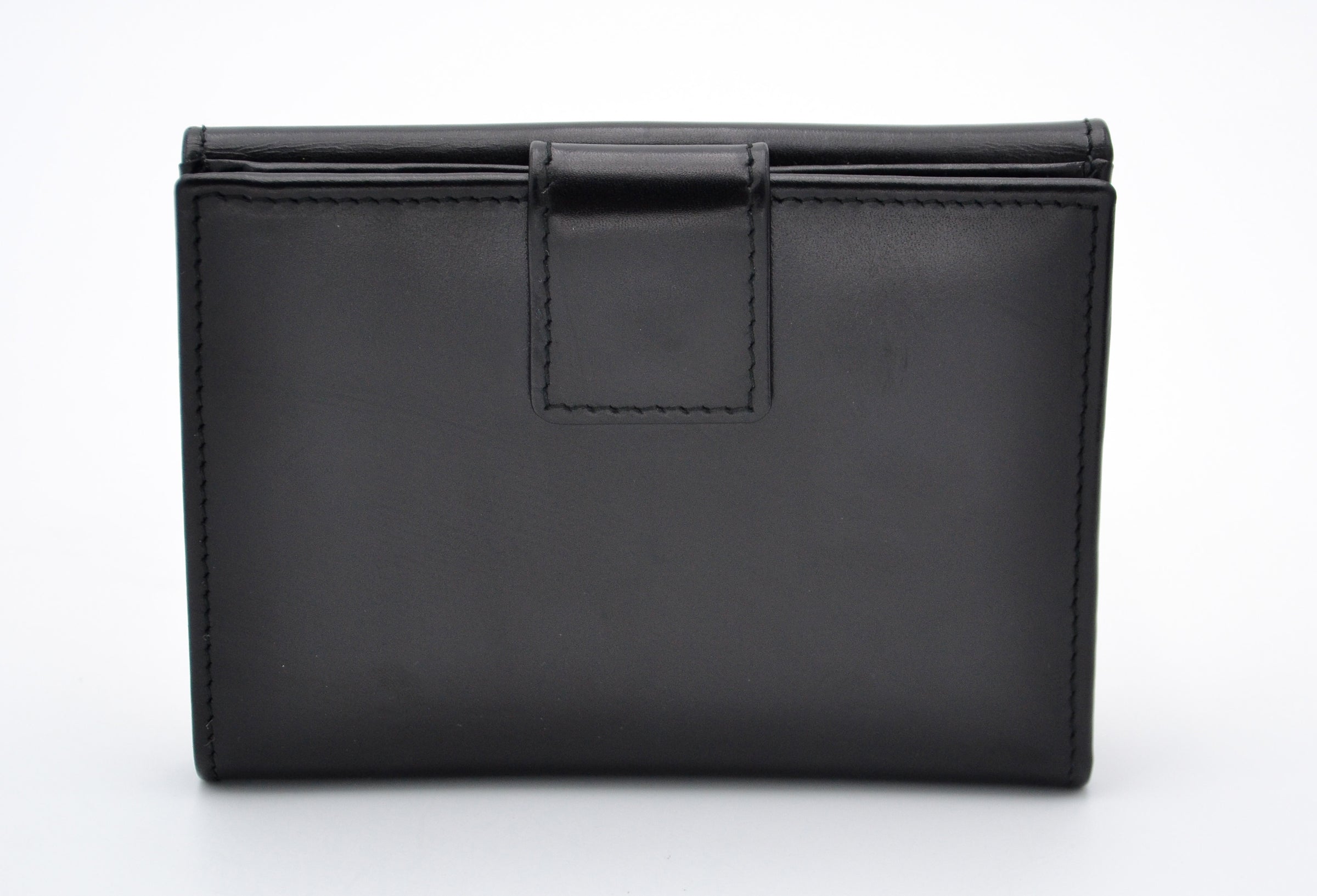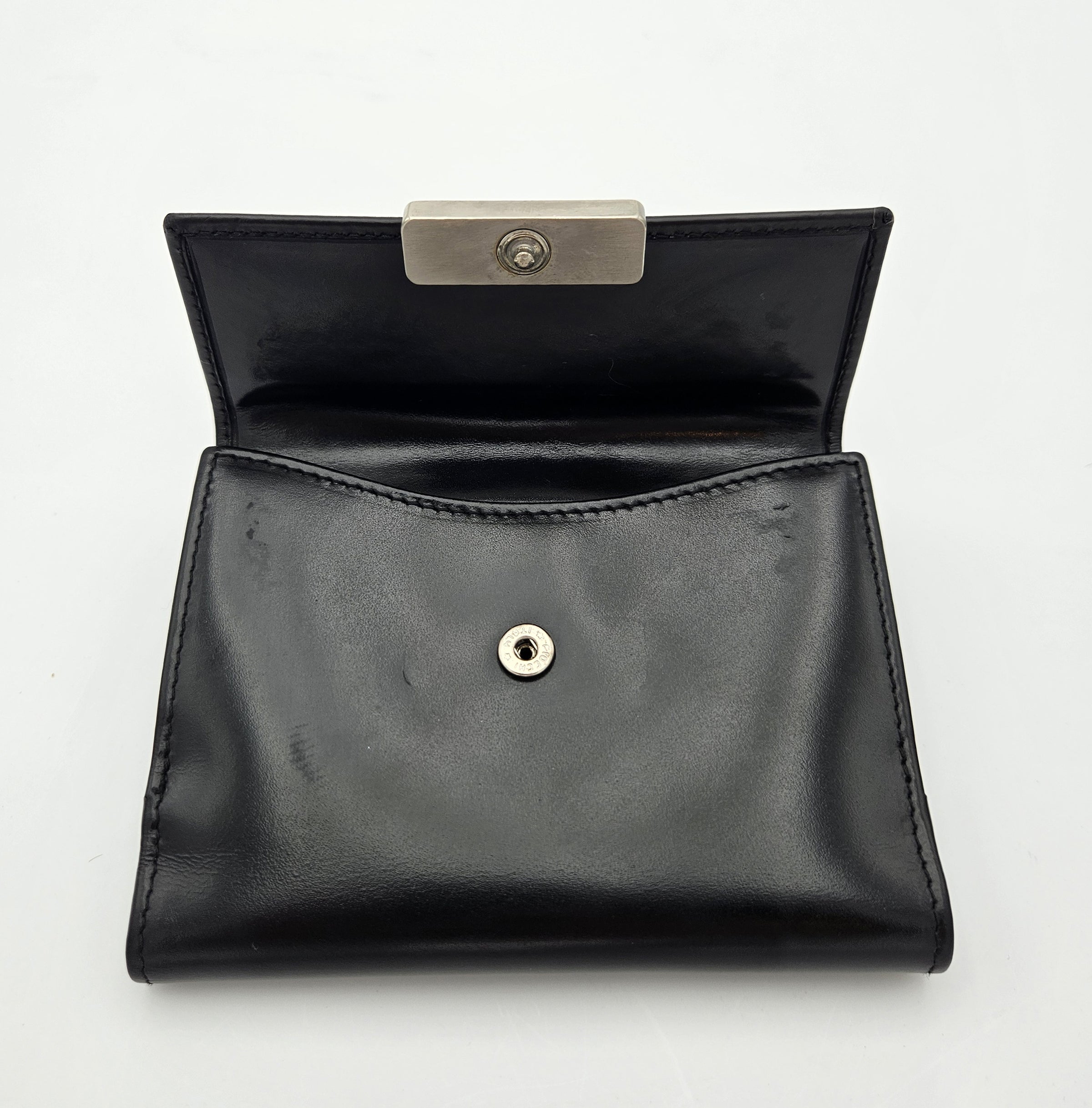 Grâce à son format compact, ce portefeuille est idéal pour être glissé dans un sac à main ou porté au quotidien sans encombrement. Le cuir est resté en très bon état, sans défaut notable, tandis que les coins sont bien conservés. Les légères micro-rayures sur la bijouterie sont normales et n’altèrent en rien l’élégance de la pièce.