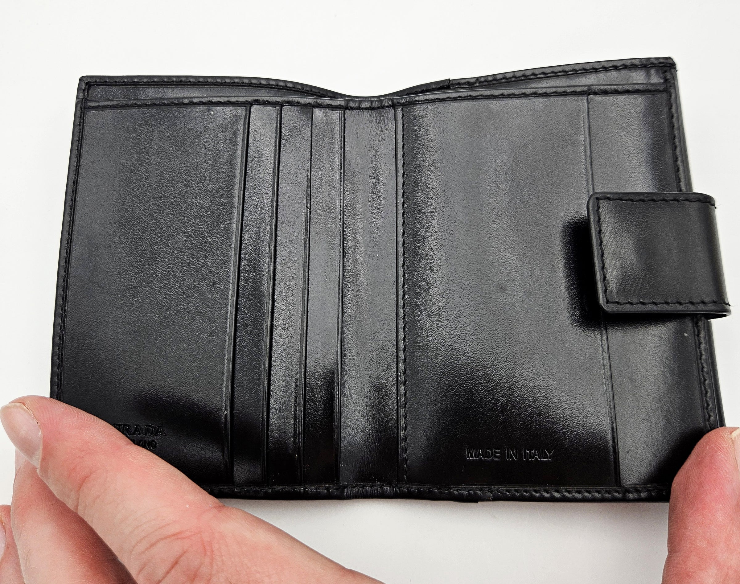 L’intérieur, propre et fonctionnel, présente seulement de légers signes d’usage, témoignant d’une utilisation soignée. Pratique et intemporel, ce portefeuille Prada est une pièce essentielle pour celles et ceux qui recherchent un accessoire de luxe élégant, durable et polyvalent.