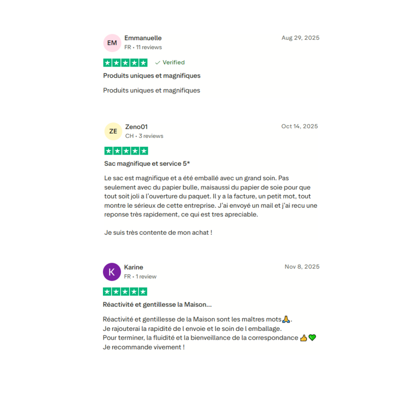Nous ne sommes pas une chaîne impersonnelle — nous sommes des humains qui aimons ce que nous faisons, et cela se reflète dans chaque sac que nous proposons.