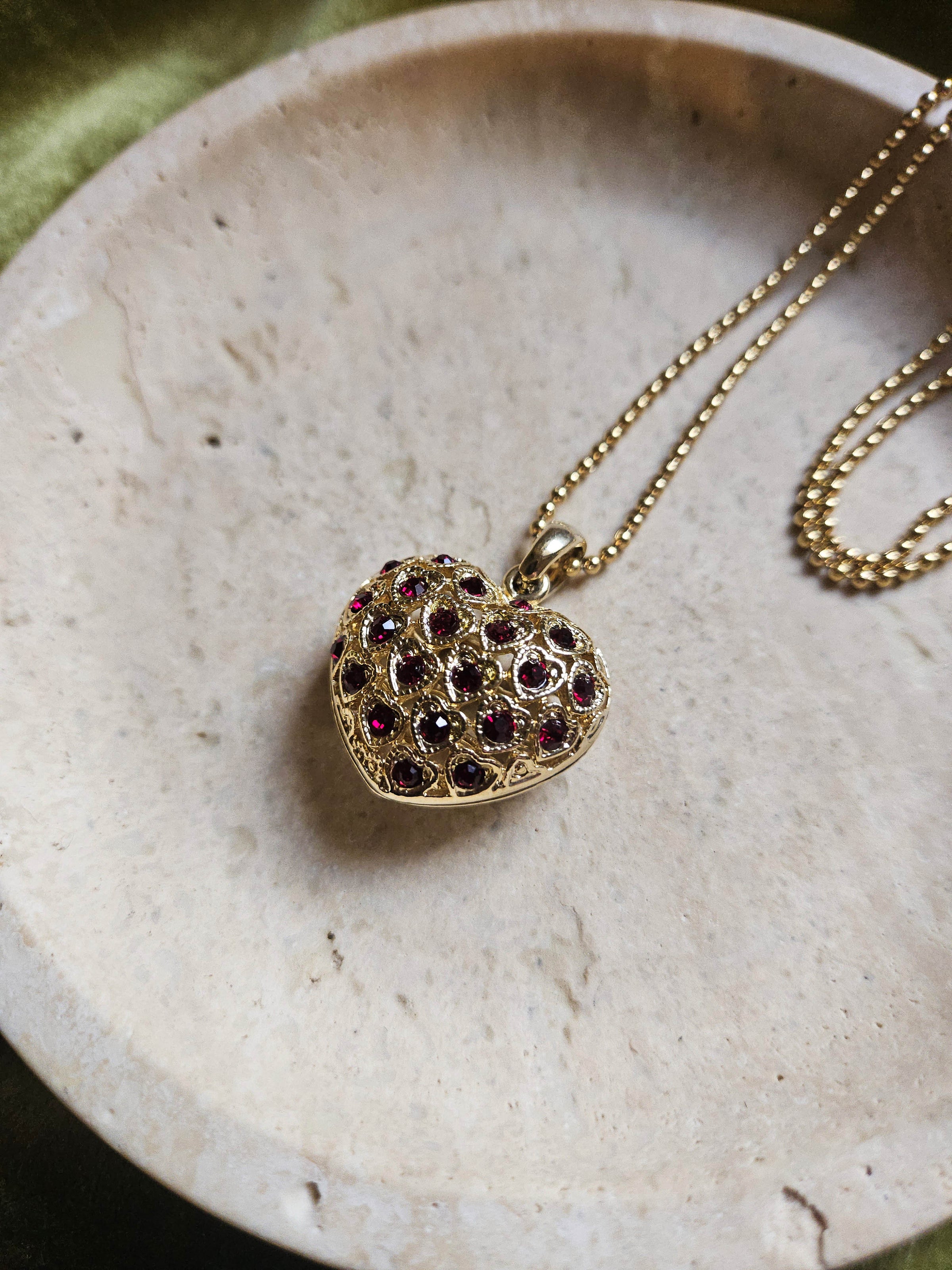 Matériau : Métal plaqué or et strass couleur rubis