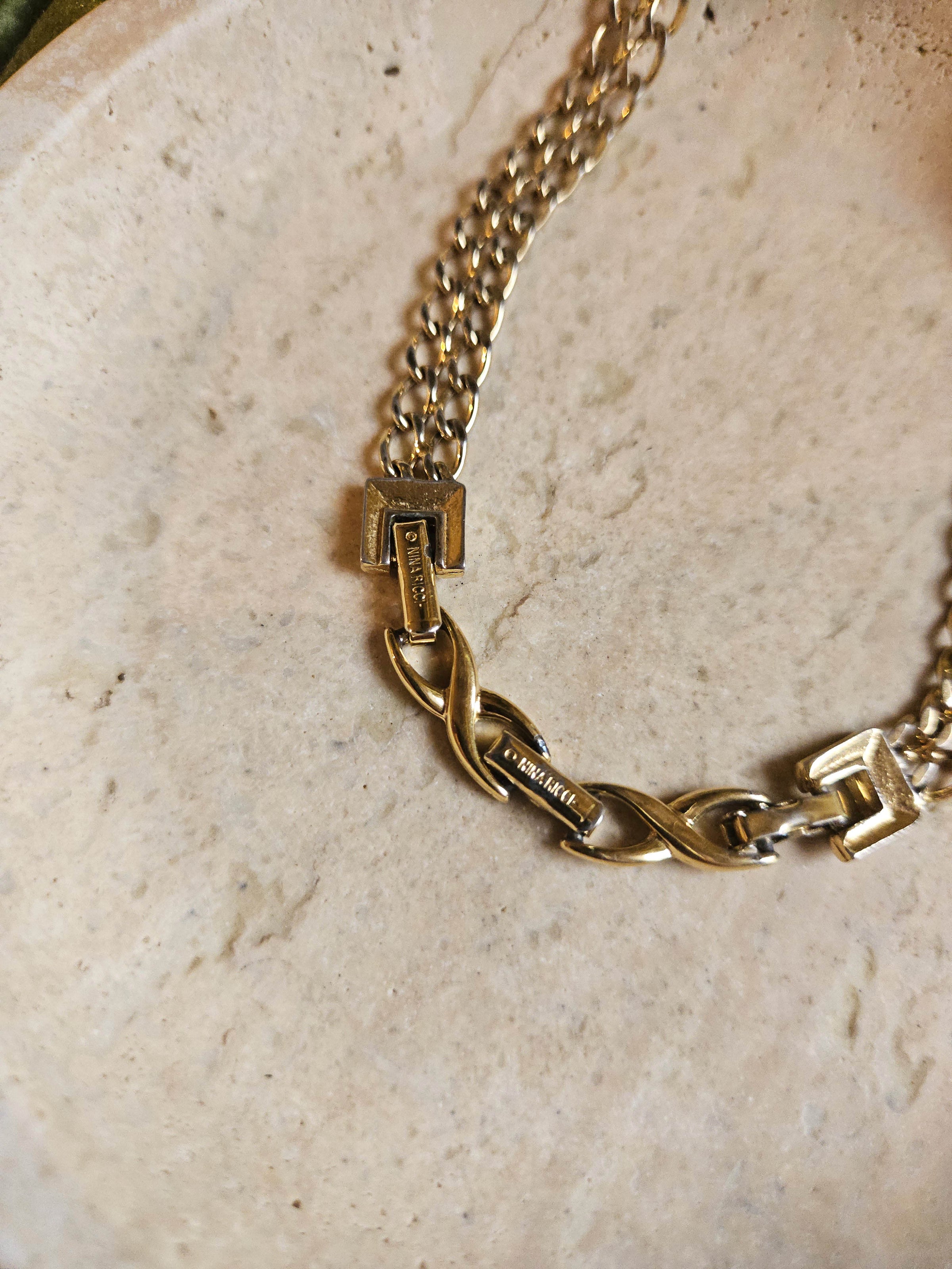 Nina Ricci, fondée en 1932 par Maria Nina Ricci à Paris, est célèbre pour ses créations féminines, élégantes et intemporelles. Les bijoux de la maison reflètent ce raffinement, combinant sophistication, modernité et glamour discret. Ce sautoir est ainsi une pièce rare et versatile, idéale pour compléter une collection de bijoux vintage de prestige.